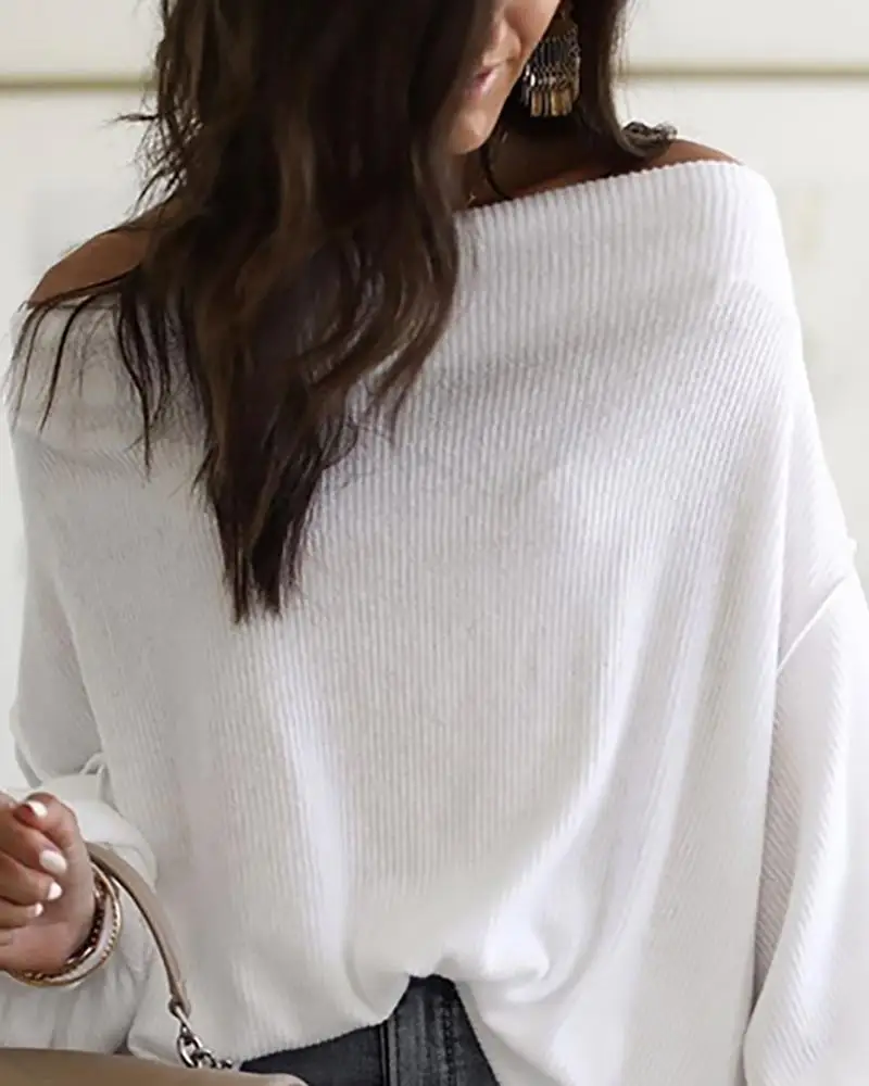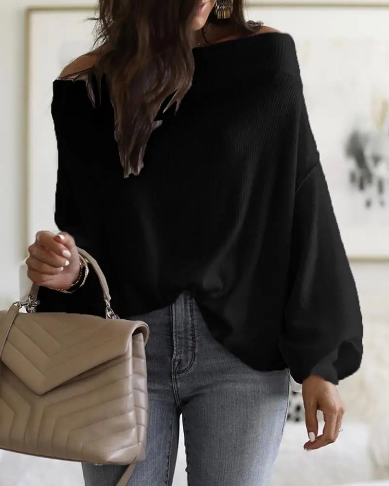 Блузка в рубчик с вырезом лодочкой и рукавом-фонариком, Женская Осенняя однотонная блузка с длинным рукавом, топы