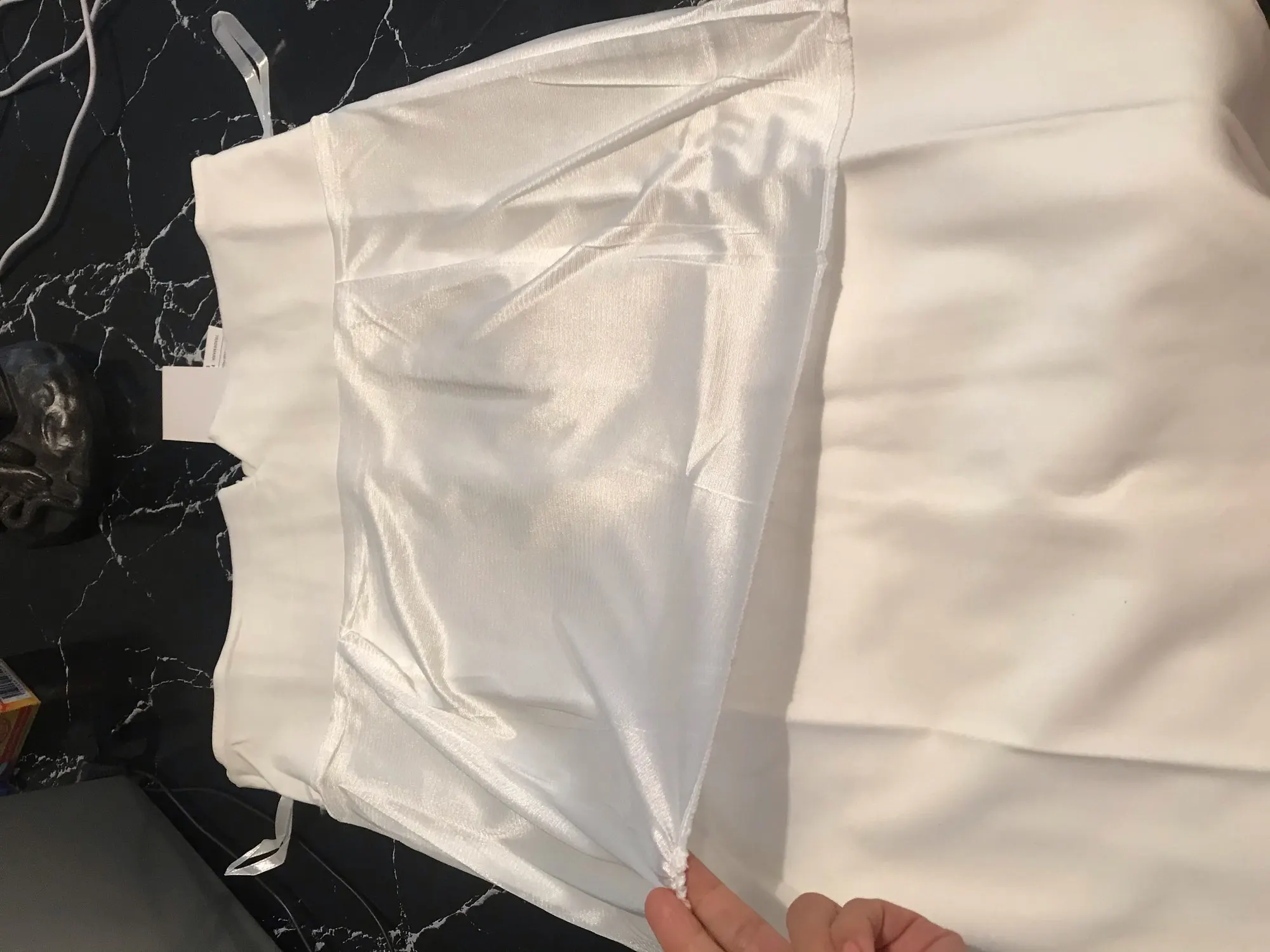 Очень мило, он широко расширяется и много расширяется, сначала я запросил размер XL, но увидев несколько комментариев, что он был немного уменьшен, Я сделал решение попросить продавца прислать мне размер XXL, и он любезно прислал мне именно то, что я хотел, Деталь в том, что он сильно расширяется, и я остаюсь немного свободным, но я немного отрегулирую его с помощью швейной машинки. В общем, он красивый, он приносит короткий нижний тип вниз, который предотвращает его быть прозрачным, ткань отличная. Моя Талия 80 см, и я думаю, что размер XL будет выглядеть идеально! Отличное внимание от продавца