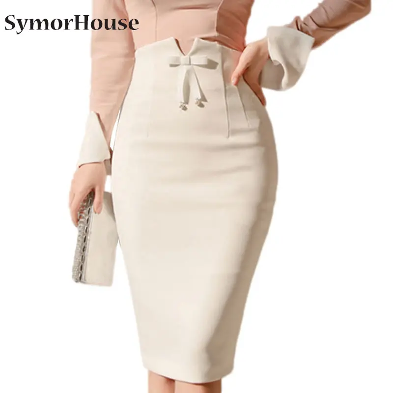 Женская юбка-карандаш SymorHouse, белая элегантная офисная юбка с разрезом на спине, весна-лето, миди-юбка с высокой талией