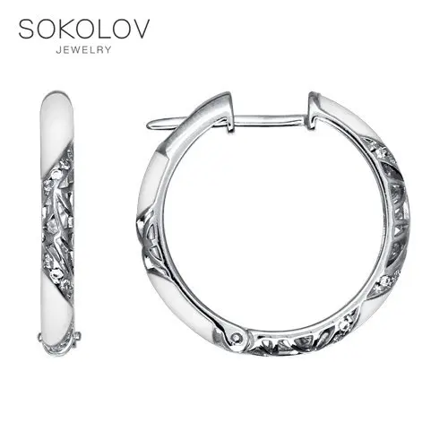 Серьги-кольца с белой эмалью SOKOLOV, Серебро, 925, Женские, Серьги 2022 тренд, Оригинальная продукция