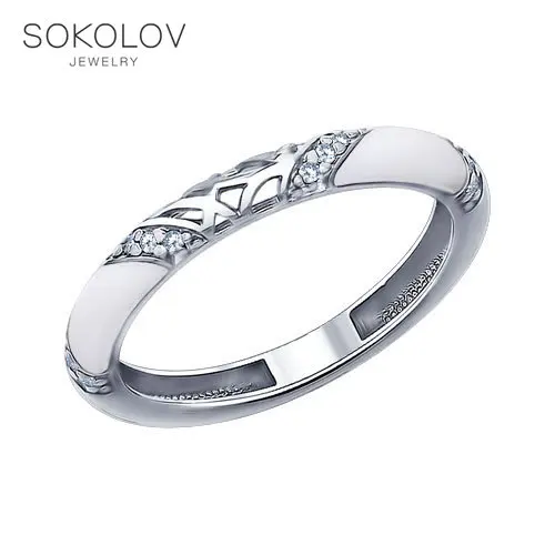 Кольцо SOKOLOV из серебра с эмалью с фианитами, Серебро, 925, Женское, Оригинальная продукция