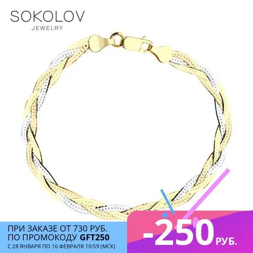 Браслет SOKOLOV из золочёного серебра, Серебро, 925, Браслеты на ру...