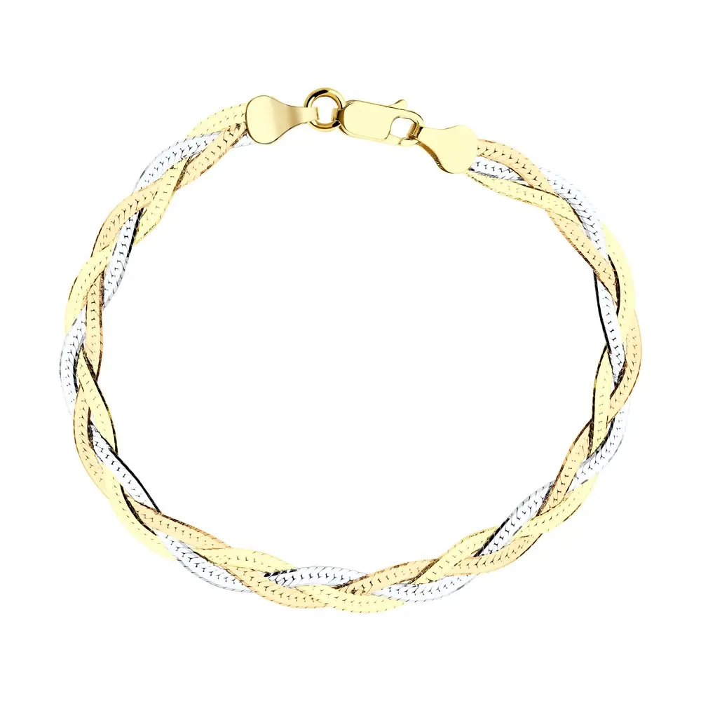 Браслет SOKOLOV из серебраТриединство благородных оттенков серебра – главный дизайнерский приём этого стильного браслета. В центре внимания – белое, лимонное и красное покрытия, переплетающиеся в едином узоре. Такое украшение оживит любой из выбранных образов: от лёгкого летнего сарафана, до строгой блузы.
