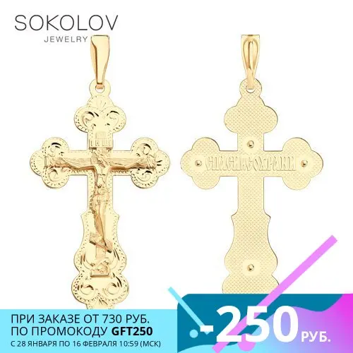 Крест SOKOLOV из золочёного серебра с гравировкой, Серебро, 925, Оригинальная продукция