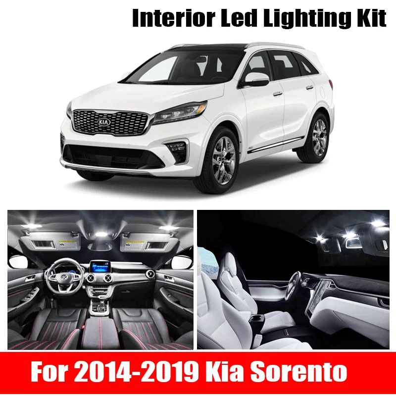 9 шт., белая лампочка, светодиодный светильник для салона автомобиля для 2014-2019 Kia Sorento Map, купольная лампа для перчаточного ящика багажника