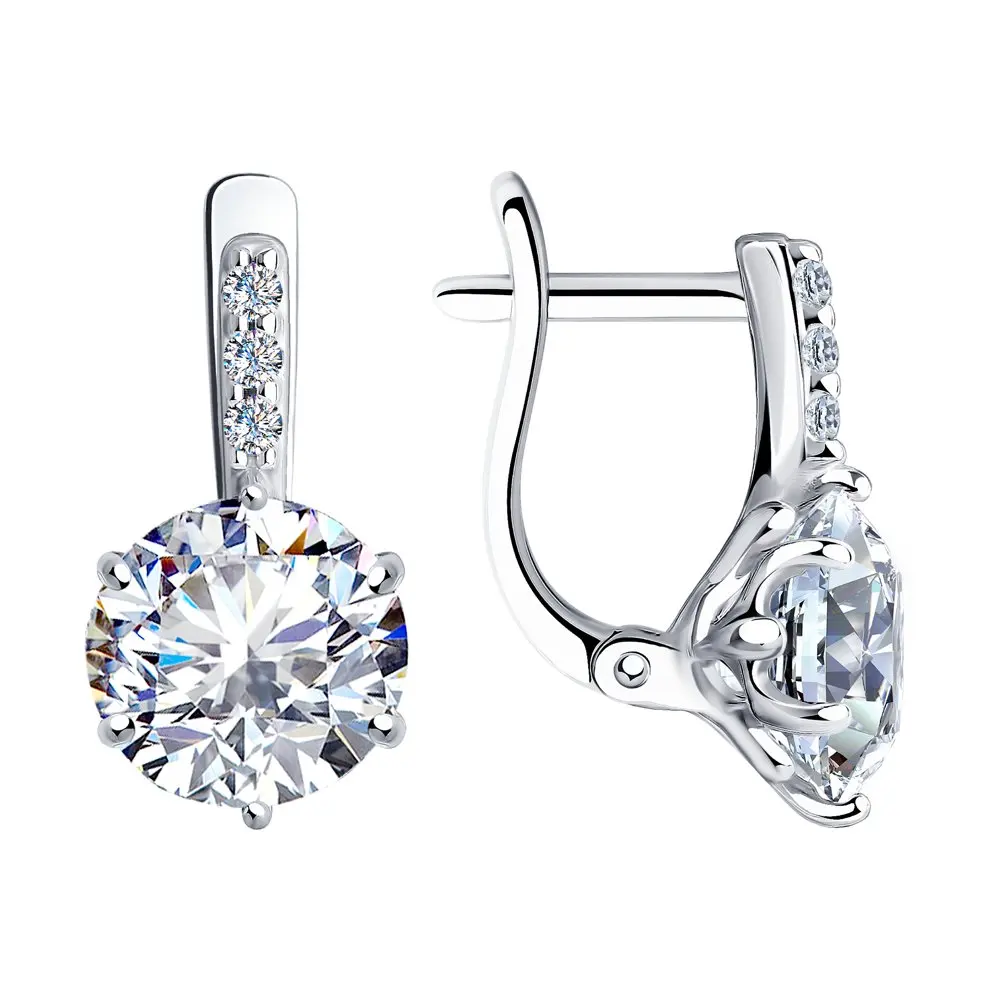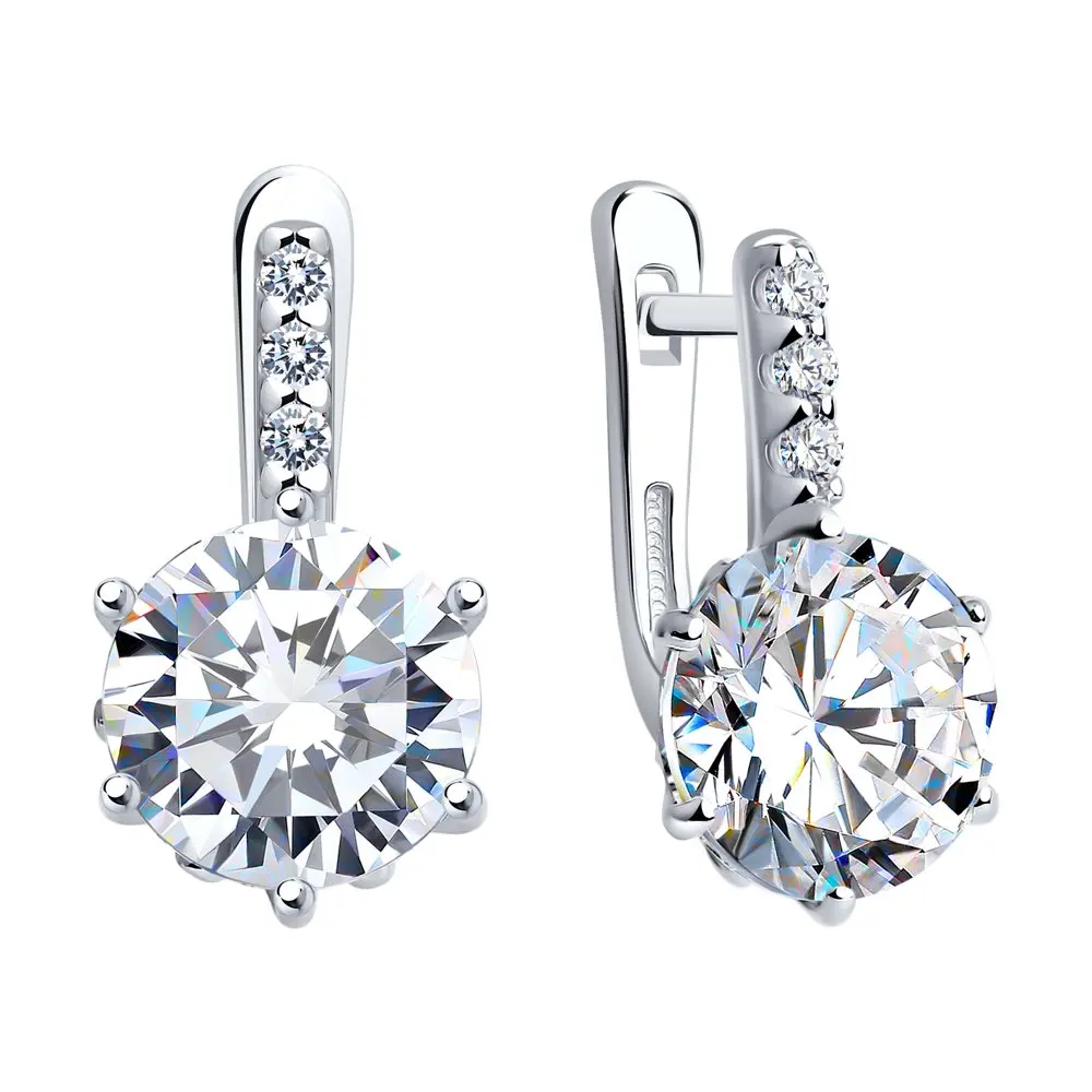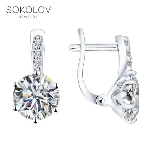 Серьги SOKOLOV из серебра с фианитамиБезупречная классика – серебряные серьги с крупными фианитами – украшение, которое способно каждый образ сделать невероятно женственным, романтичным и элегантным. Уникальная огранка и высочайшее качество камней дарят удивительный блеск и игру света в каждой грани. Удобный английский замок надёжно зафиксирует серьги на ухе, поэтому даже если вас ждёт вечеринка с активными танцами, вы останетесь совершенны.