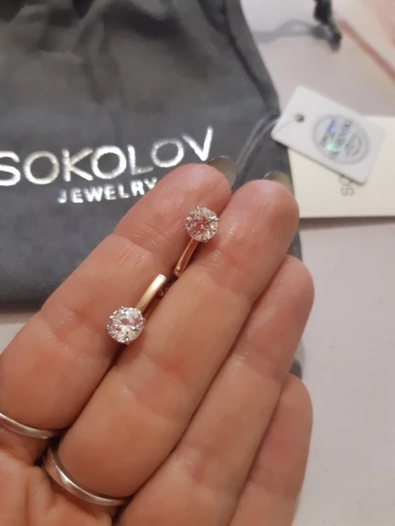 Серьги-пусеты SOKOLOV из золочёного серебра с фианитами, Серебро, 9...