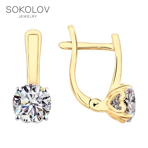 Серьги SOKOLOV из золота с фианитами, Золото, 585, Женские, Серьги ...