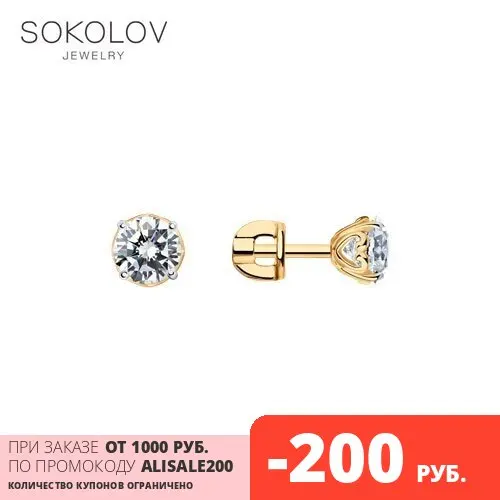 Серьги SOKOLOV из золота с фианитами, Золото, 585, Детские, Серьги ...