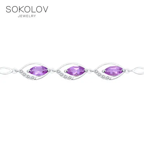 Браслет SOKOLOV из серебра с аметистами и фианитами, Серебро, 925, Браслеты на руку, Оригинальная продукция