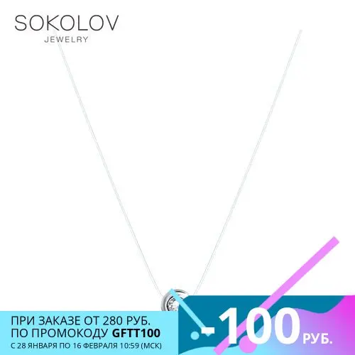 Колье на леске SOKOLOV из серебра с фианитом, Серебро, 925, Оригина...