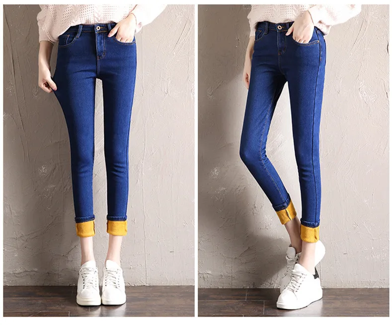 Зимние женские джинсы 2019, бархатные теплые брюки-карандаш, женски...