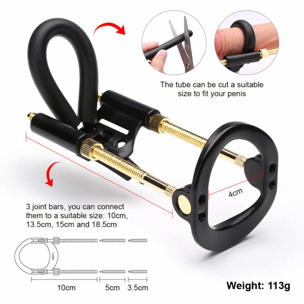 Удлинитель для пениса с полностью регулируемым натяжением с помощью резьбовых стержней.