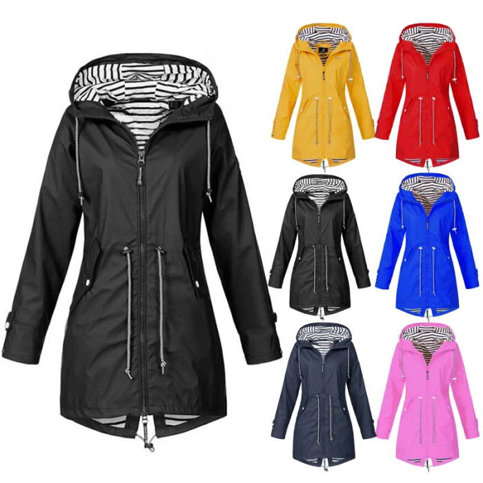 Женская водонепроницаемая ветровка с капюшоном, с длинным рукавом