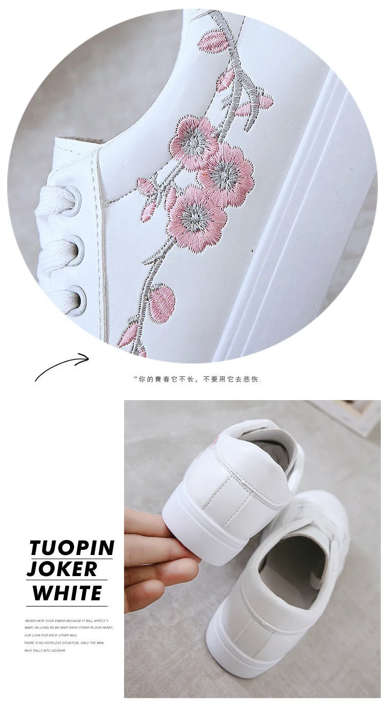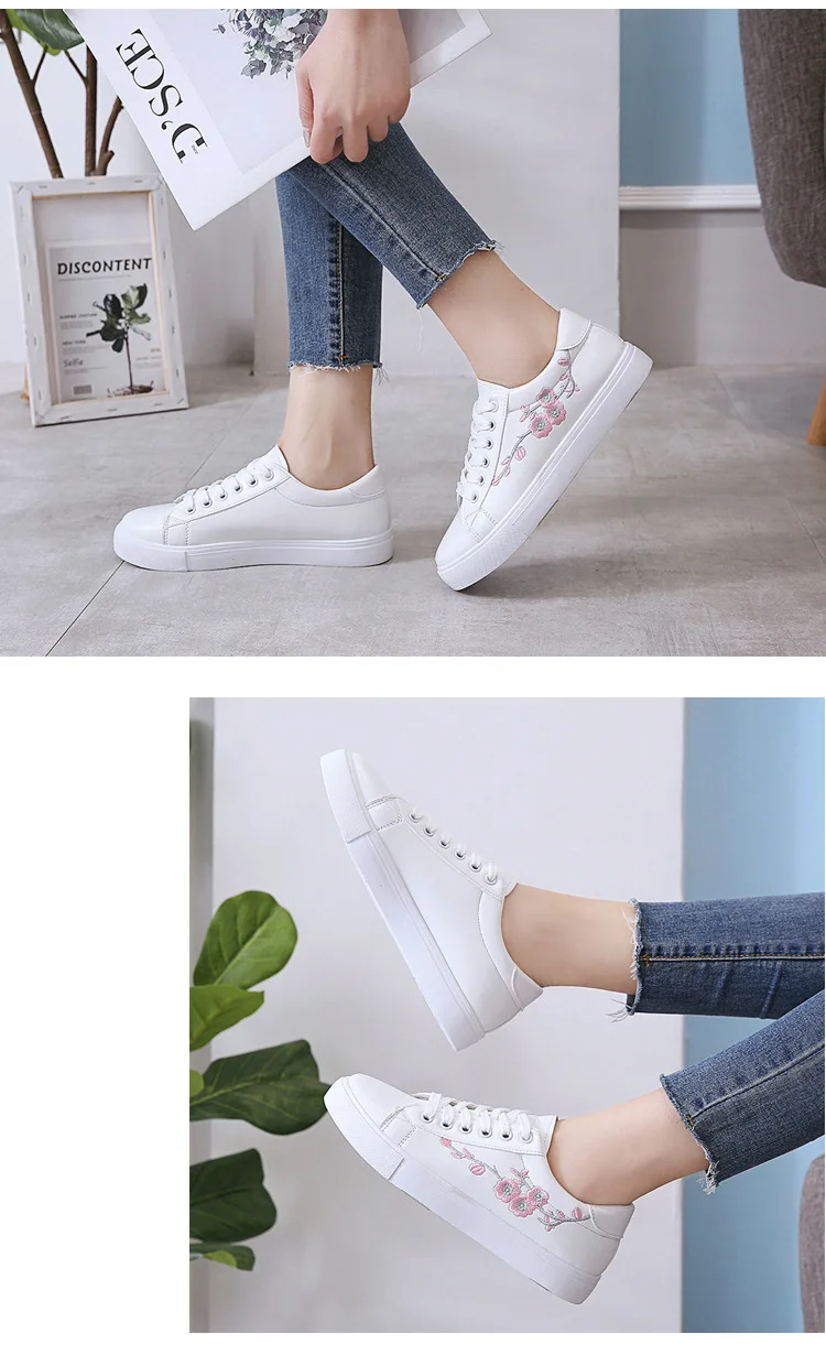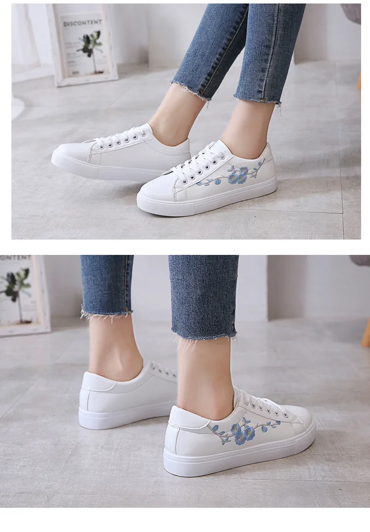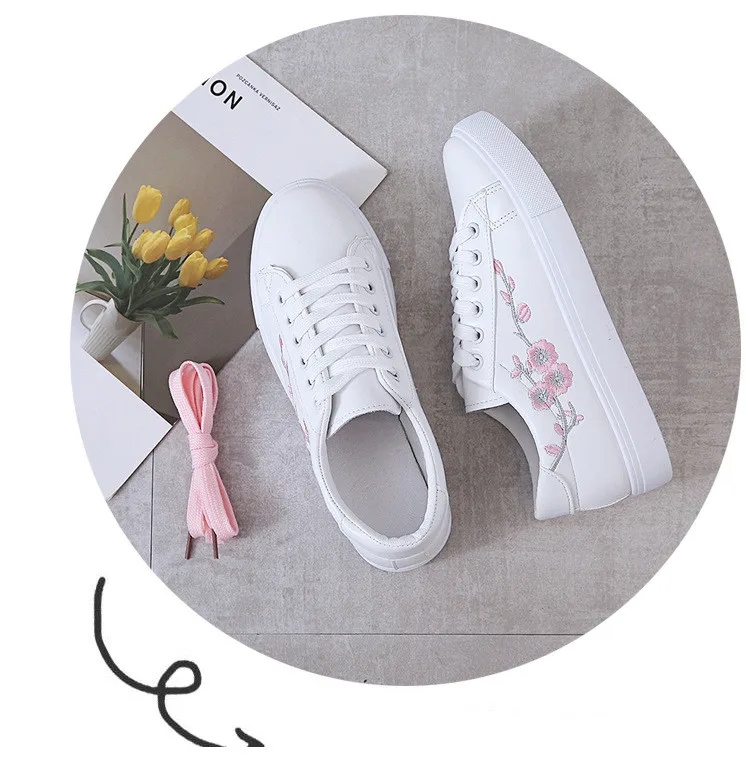 Кеды женские с цветами, модные холщовые кроссовки, плоская подошва, на шнуровке, Повседневная теннисная обувь, белые, Осень-зима 2019