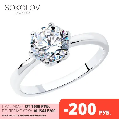 Кольцо SOKOLOV из серебра с фианитом, Серебро, 925, Женское, Оригинальная продукция