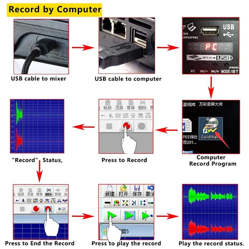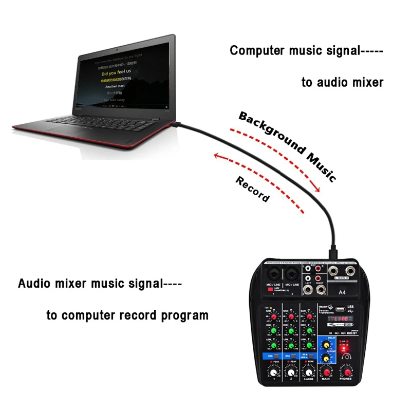 Микшерный пульт 3C-Eu, разъем A4, Bluetooth, Usb, 4 канала
