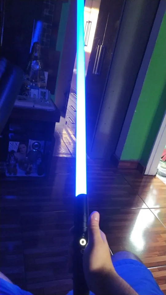 Отличная световая меч по цене, цвета и звуковые эффекты Потрясающие. Я использую его для тренировки спиннинга. Будьте внимательны, посылка прибывает в две части, так что не стресс, если вы получили ручку сначала и лезвие через 10 дней.