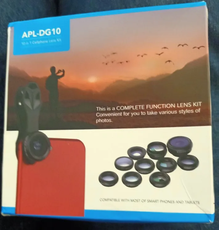 Это набор объективов для камеры 10 в 1, с 10 различными линзами, наслаждайтесь красочной фотографией! Портативный и съемный, вы можете делать фото с вашими устройствами в любое время в любом месте Работает на большинстве мобильных телефонов диаметром не более 13 мм. Высокая четкость: сделано из высококлассного стекла Светильник-вспышка будет заблокирован при использовании объектива.