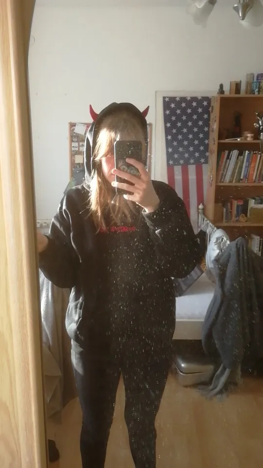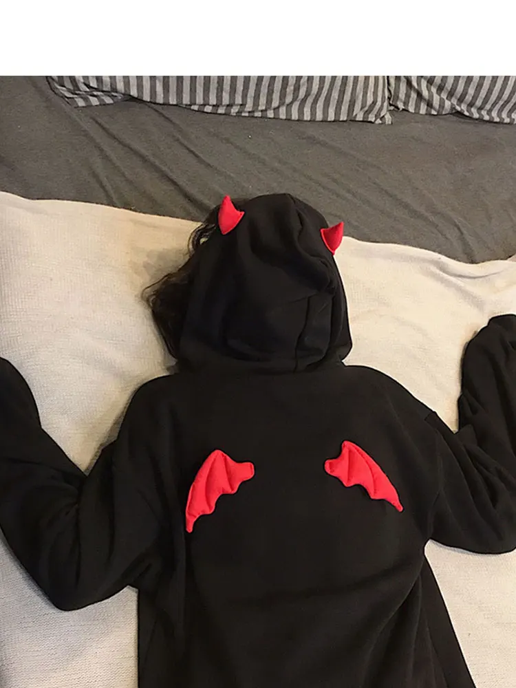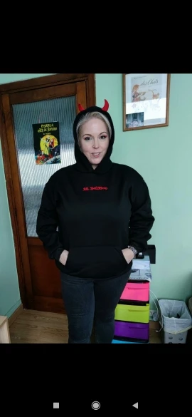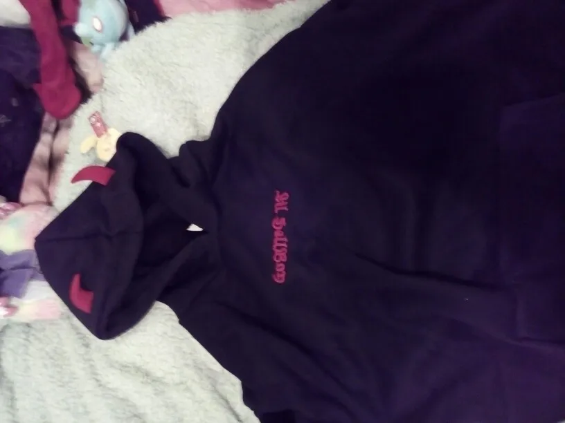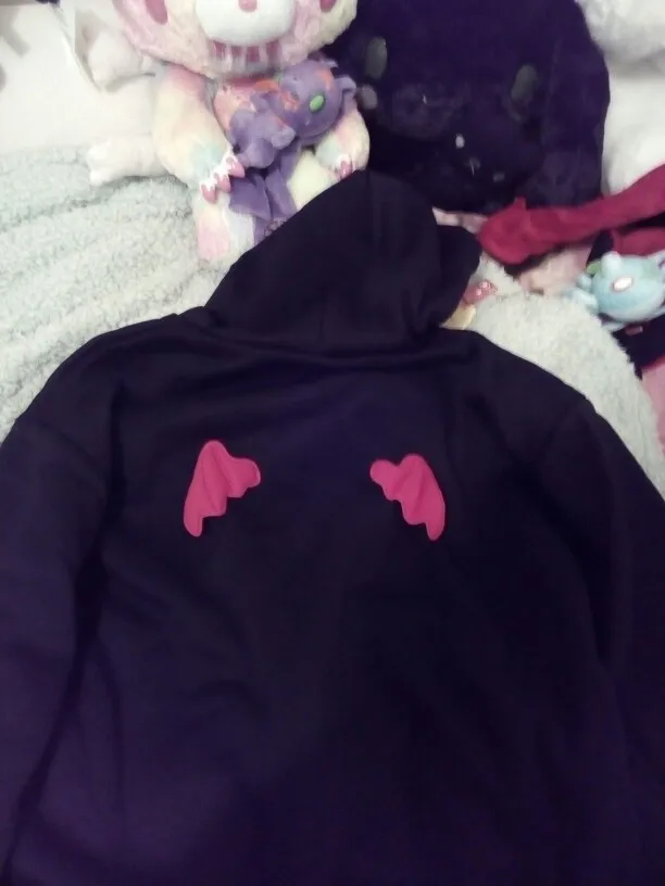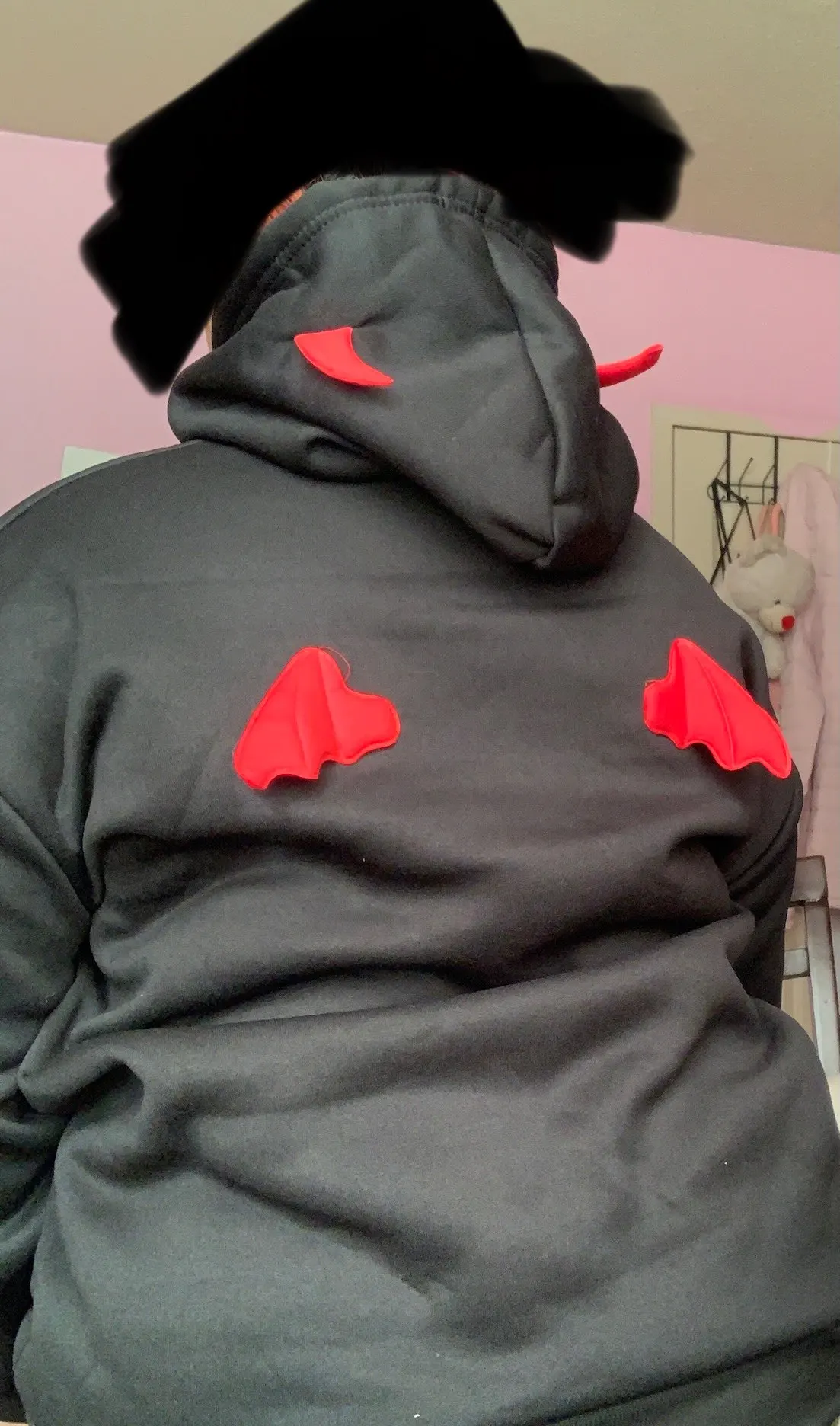 Мне нравится. Он очень мягкий и уютный. Мне нравятся рога и крылья. Это моя новая любимая толстовка. И когда вы носите его только вы можете прочитать «Lil Hell Boy», это немного круто, не будет лгать. Это самая лучшая толстовка, которая у меня когда-либо была.