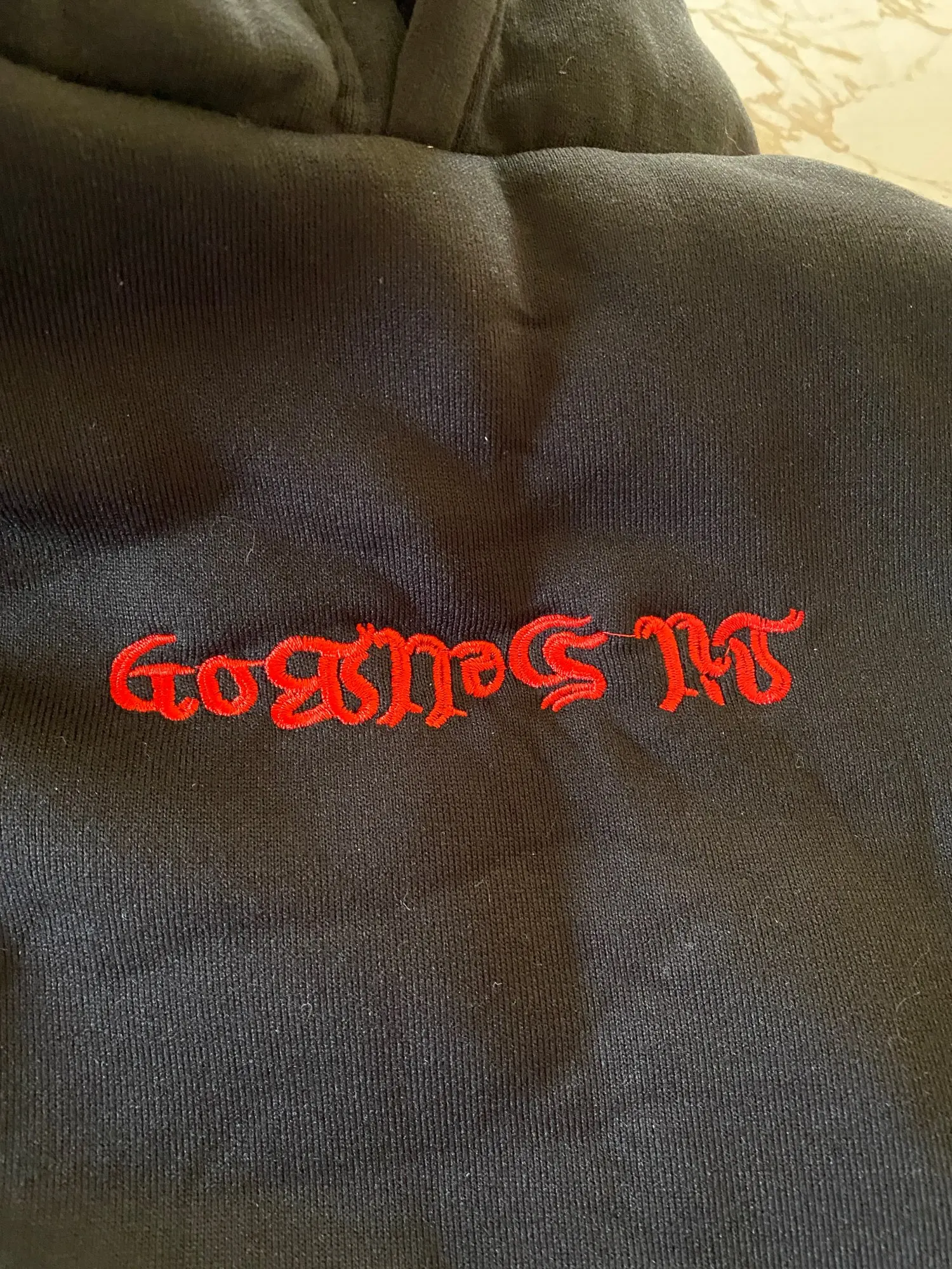 Вышивка перевернута вверх дном, и толстовка выглядит как дешевый материал. Я заказал 4xl, и он очень маленький.