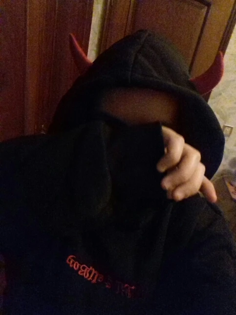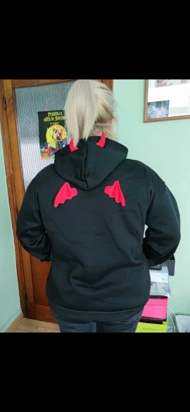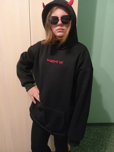 Толстовка дешевая и милая, но размер довольно далек. Я заказал 4XL, и он подходит как XL. Также есть несколько проблем с тканью и прошивкой. Прошитые слова спереди перевернуты, и материал кажется немного странным. В противном случае крылья и Рог очень милые, а толстовка очень теплая. Если вы хотите заказать эту толстовку чертенка, я рекомендую купить ее у другого продавца, чтобы принт не был перевернут вверх дном! :,)
