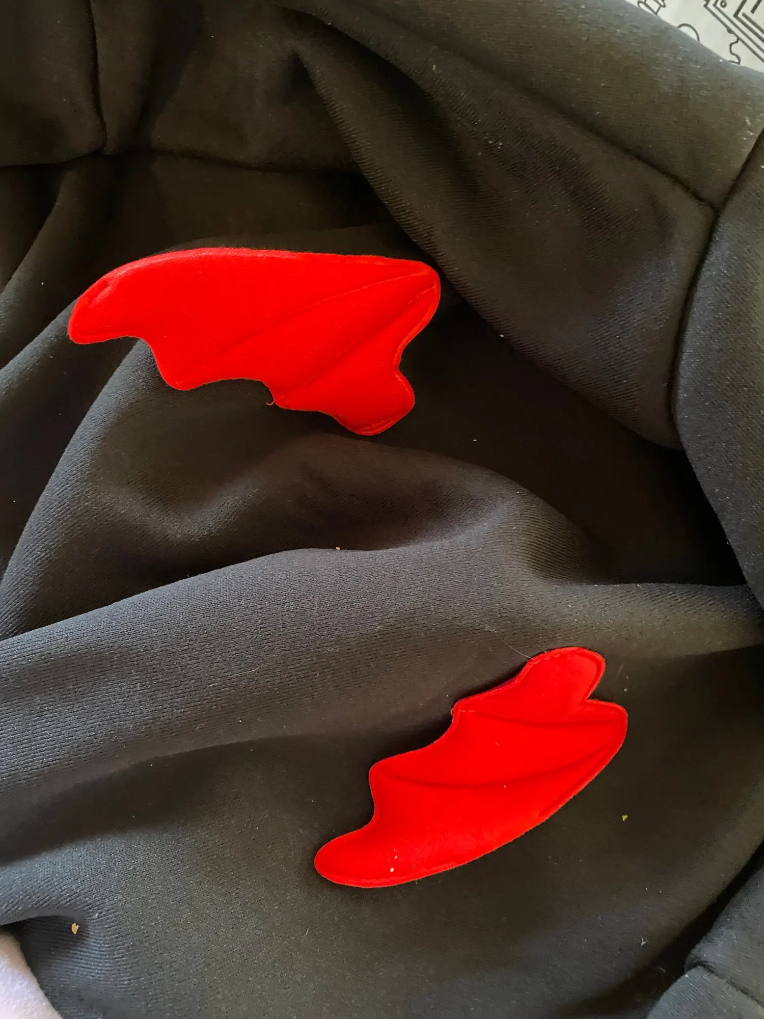 Крылья на спине и рогатина капюшоне очень маленькие, пришиты криво