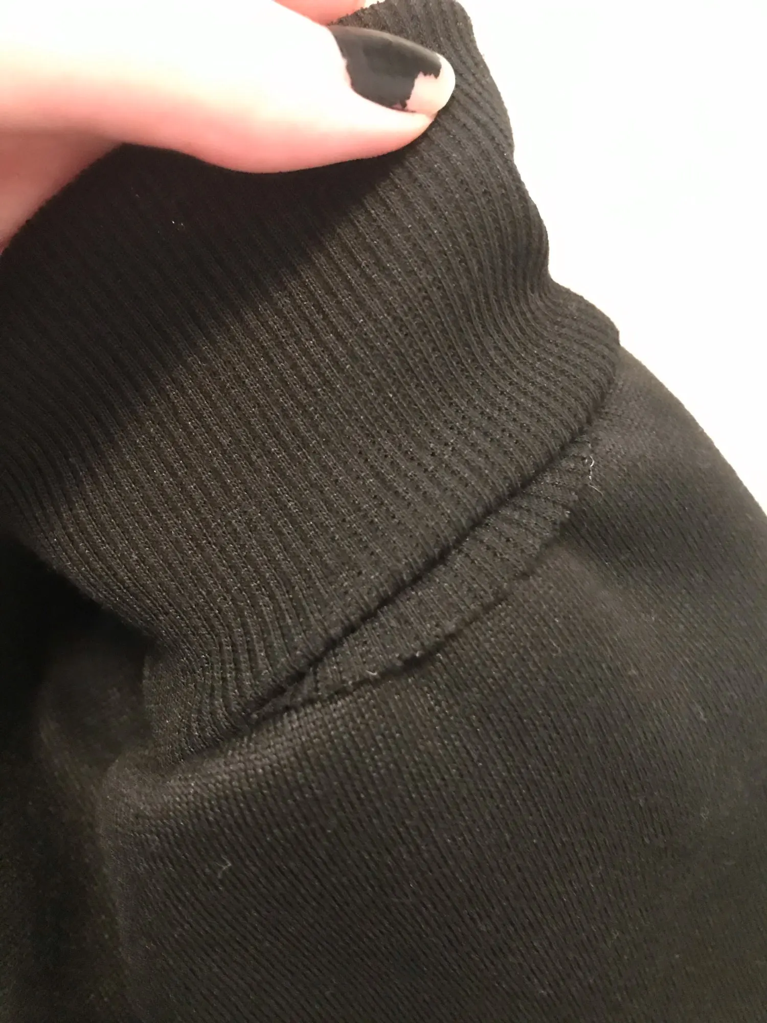 Вышивка была обновлена (рис. 1), на рукавах и на нижней части толстовки была немного свободная нить (рис. 2 и 3), и это не было Правильно сшитая на одном из рукавов (рис. 4), кроме того, это достойная толстовка с капюшоном и размером, который вы обычно получаете, вы думаете о покупке Для себя