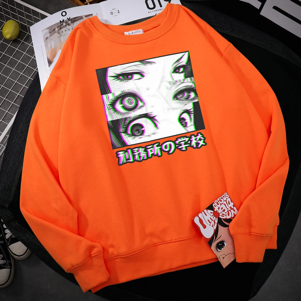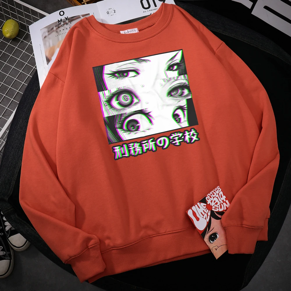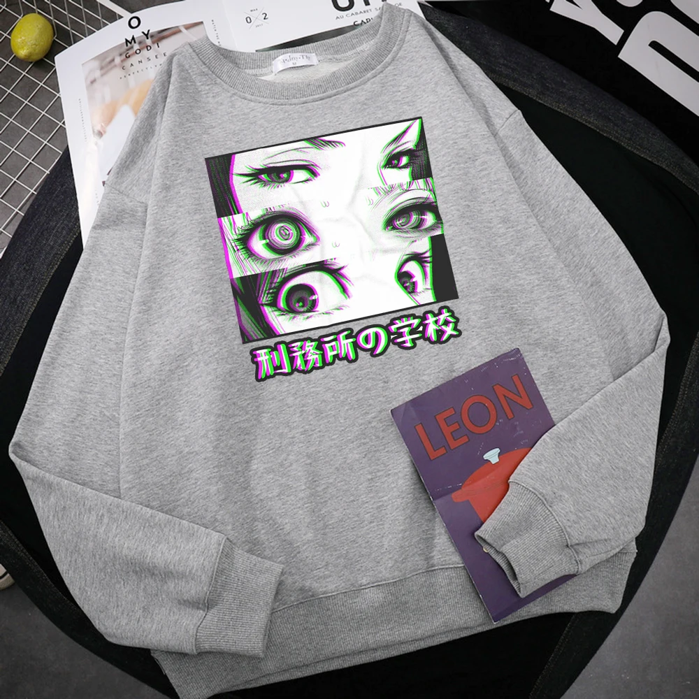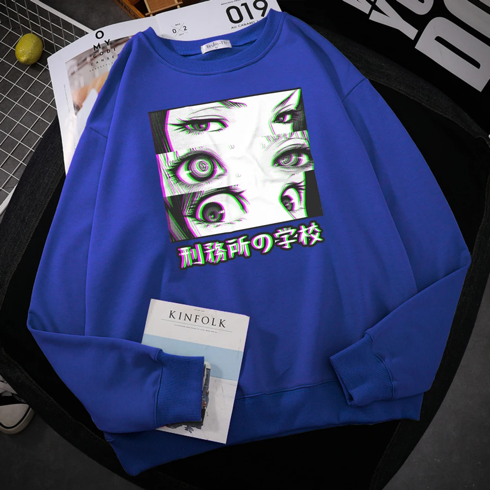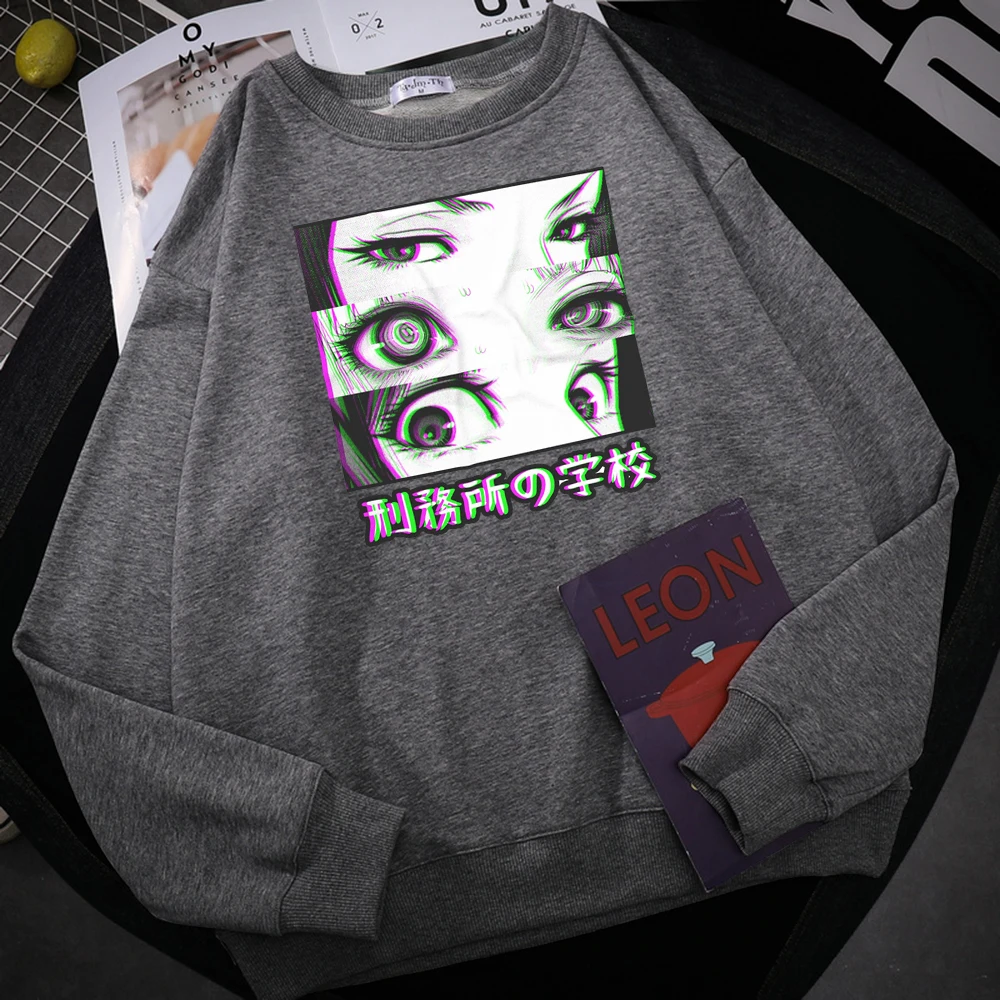 Новое поступление 2021, японский аниме эстетический пуловер, мужской свитшот с принтом грустных глаз из тюрьмы, Мужская Весенняя флисовая одежда, повседневные топы