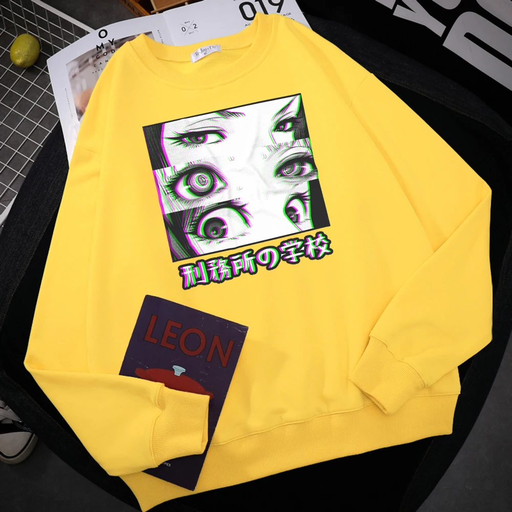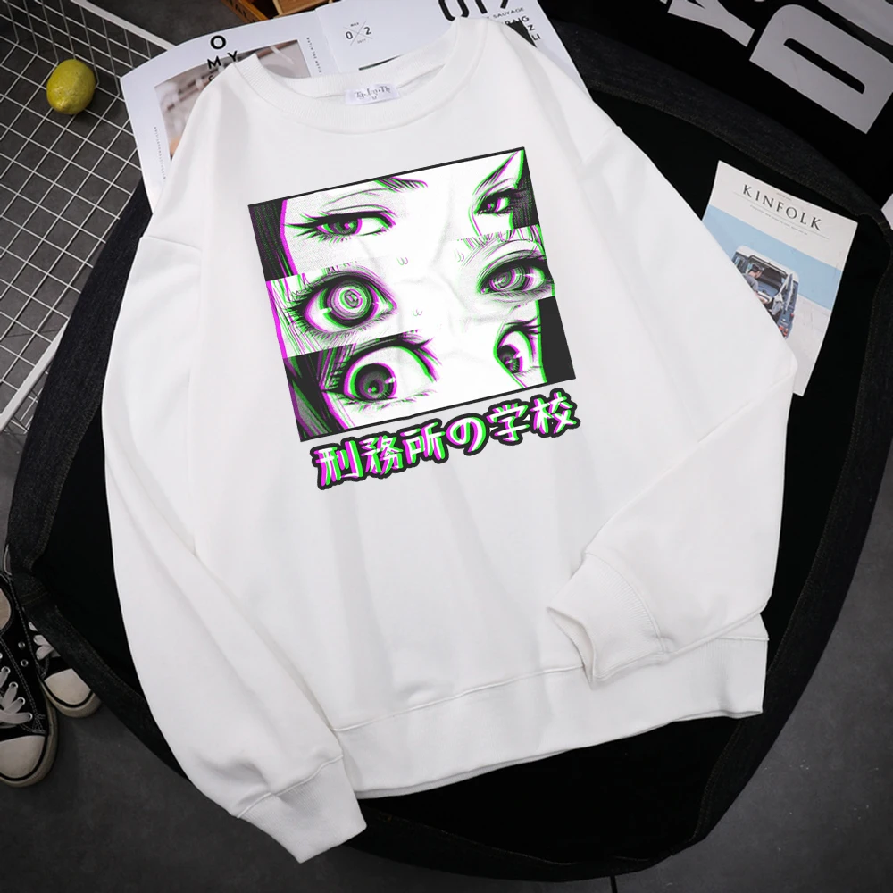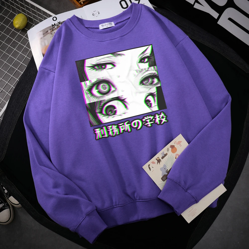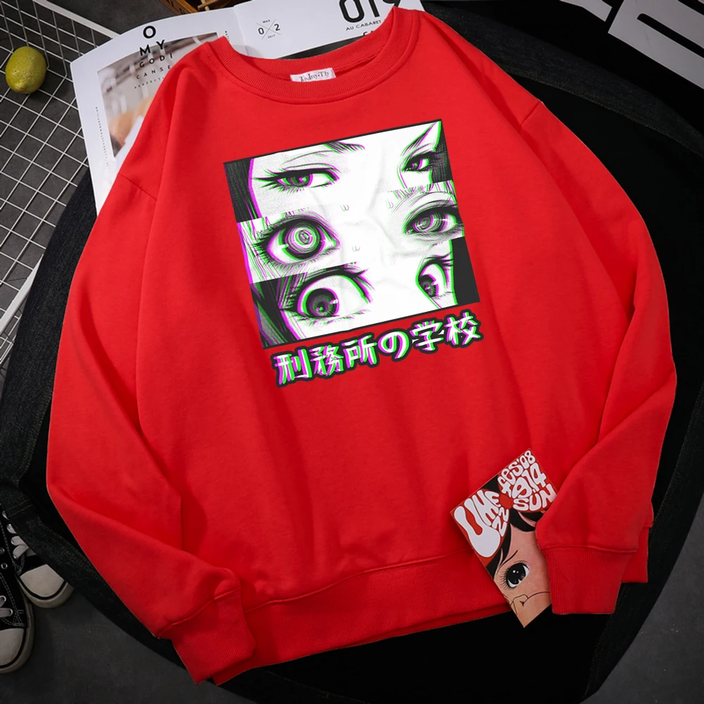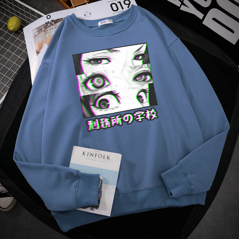 Новое поступление 2021, японский аниме эстетический пуловер, мужской свитшот с принтом грустных глаз из тюрьмы, Мужская Весенняя флисовая одежда, повседневные топы