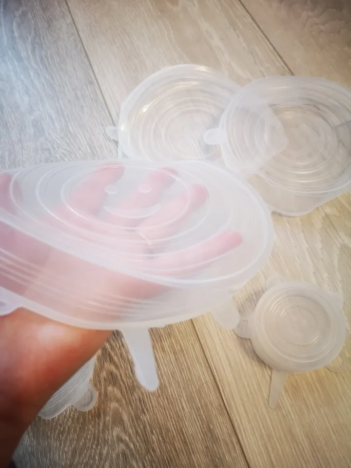 Тонкие, но прочные крышечки, удобно хранить. Подходят для начатых банок с консервами или для маленьких тарелочек. Размеры разные, неприятного запаха нет.