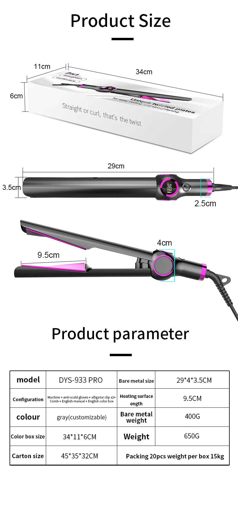 Профессиональные утюжки для выпрямления волос, утюжок для волос, электрический гофрированный щипцы для завивки с рощей и лентой для волос