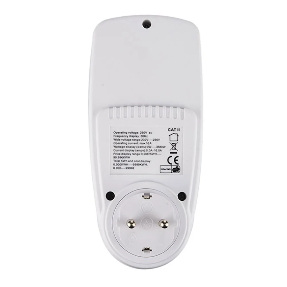 Характеристики: Модель: KWE-PMB01 Рабочее напряжение: 230 В, 50 Гц для вилки ЕС/Великобритании/Австралии, 120 В, 60 Гц для вилки США Рабочий ток: макс. 16 А Широкий диапазон напряжения: 230-250 В для вилки ЕС/Великобритании/Австралии, 110-130 в для вилки США Диапазон Отображение времени: 0 секунд ---- 9999 дней Отображение мощности (Вт): 0 Вт ---- Вт Диапазон отображения напряжения: 0 В ---- 9999 в Отображение тока (А): 0,0 ---- А Частотный дисплей: 0 Гц ---- 9999 Гц Минимальная мощность отображения: 0,0 Вт ---- 3680 Вт Максимальный диапазон отображения мощности: 0,0 Вт ---- 3680 Вт Диапазон отображения цен: 0,000квтч ---- 99,99квтч Общий киловатт-час и отображение стоимости: 0,000квтч ---- 9999 кВтч Товары «сделай сам»: электрические Вилка: вилка ЕС/вилка США/вилка Великобритании/вилка Австралии (опционально) Цвет: белый Размер изделия: 72x70x158 мм