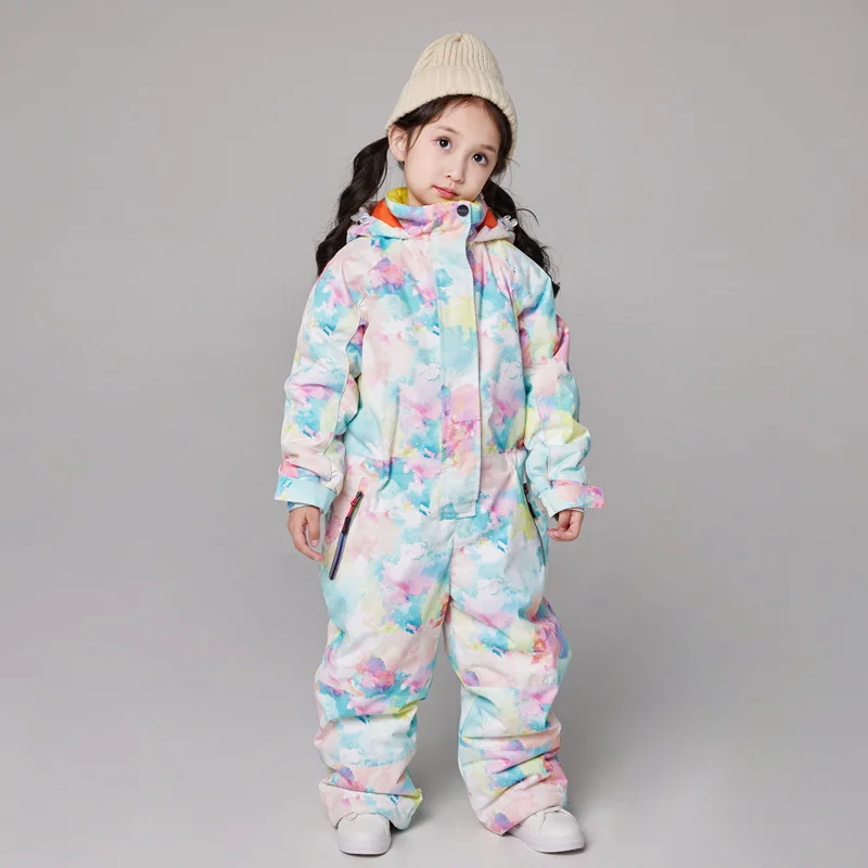 Детский цельный лыжный костюм для девочек, сиамский водонепроницаем...
