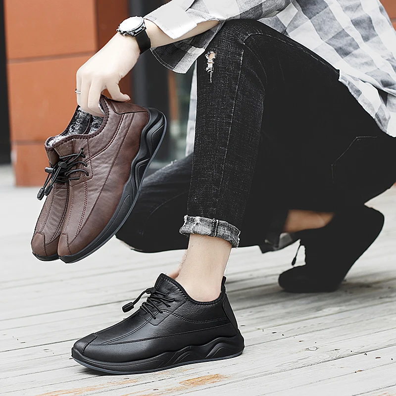 Мужские бархатные кроссовки, зимние, теплые, деловые, повседневные, хлопковые, водонепроницаемые