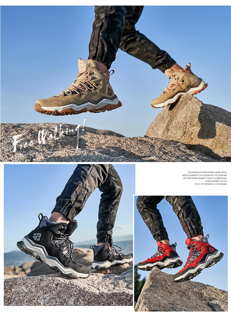Три года уже ношу низкие кроссовки RAX с замшевый верхом, включая зиму, решил теперь купить высокие кроссовки с поддержкой голеностопа для трекинга. Доставка 2 недели. Замша сверху очень хорошая, жаль что язык тканевый. На свой 44 размер ноги заказал 45, как раз есть место под тёплый носок.