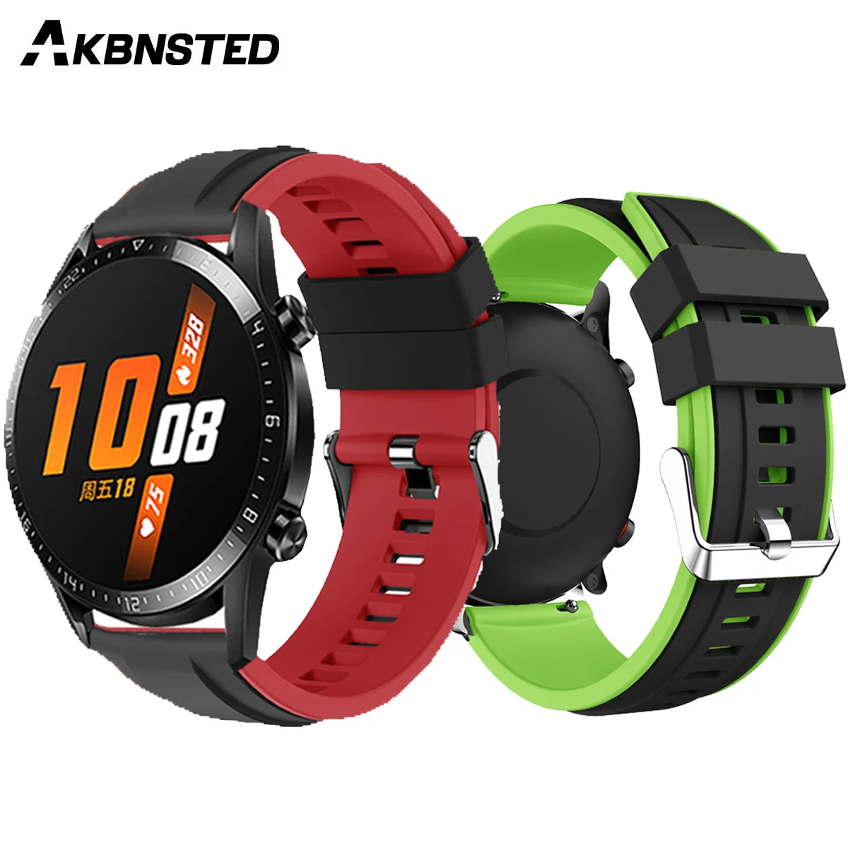 Двухцветный силиконовый ремешок AKBNSTED для умных часов Huawei Watch GT 2, 46 мм, 22 мм, сменный ремешок для часов, аксессуары для Huawei