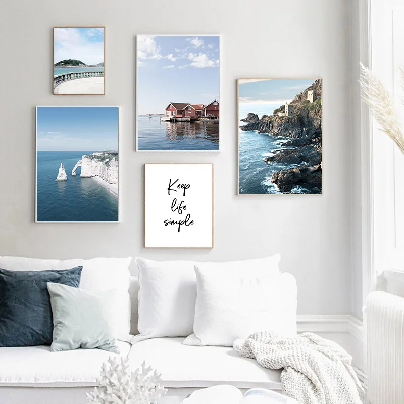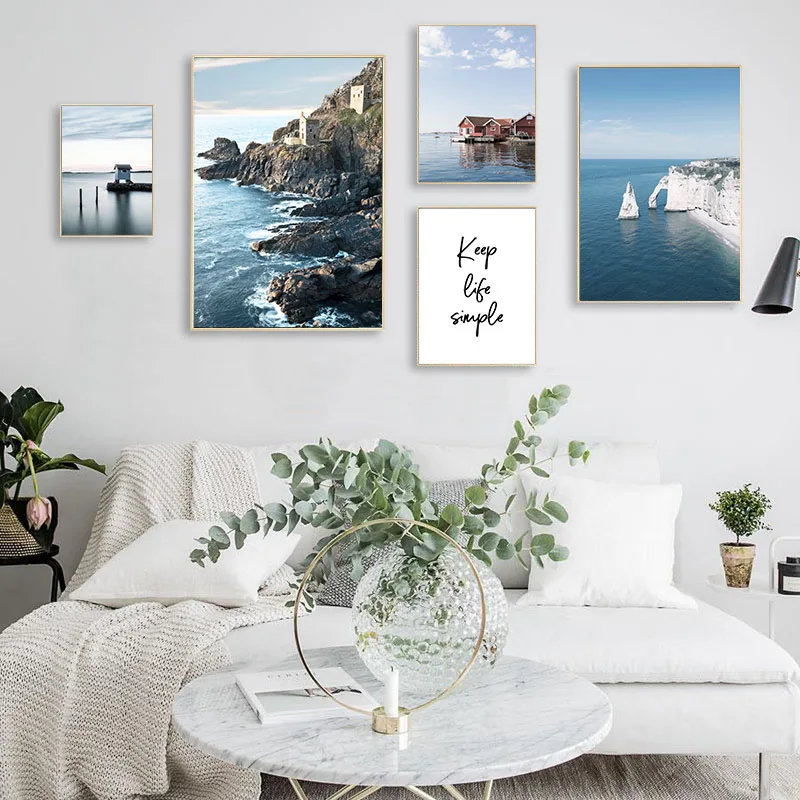 Скандинавская декорация, Постер и печать морских волн, морского пля...