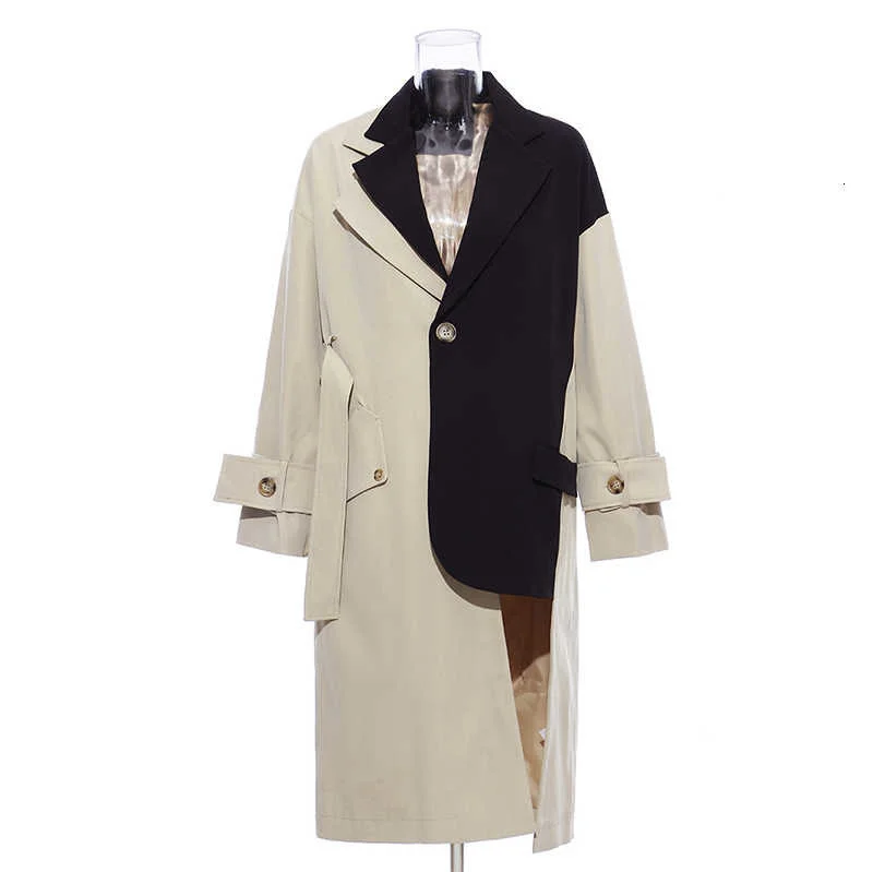 EAM Женский Асимметричный Тренч цвета хаки большого размера, новая свободная ветровка с отворотом и длинным рукавом, весна-осень 2022, 1K912