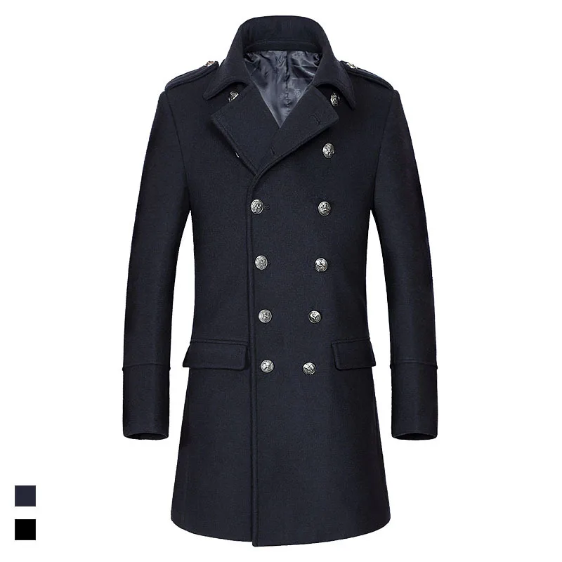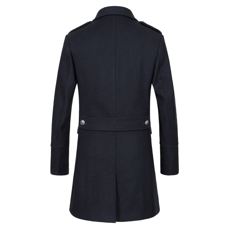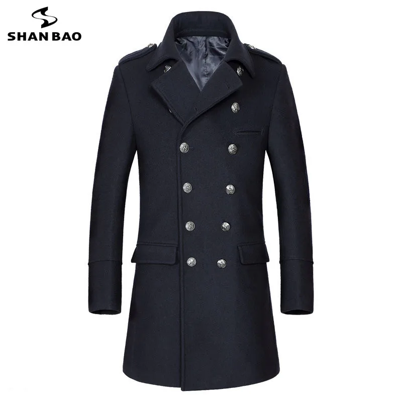 Шерстяное пальто темно-синего цвета, деловая Повседневная брендовая одежда, роскошное утепленное приталенное Мужское пальто с двумя рядами пуговиц, зима 2019