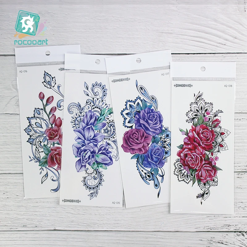 Rocooart 1 шт. модная женская Временная тату-наклейка с цветными розами дизайн маленькая Цветочная рука боди-арт водостойкая поддельная татуировка