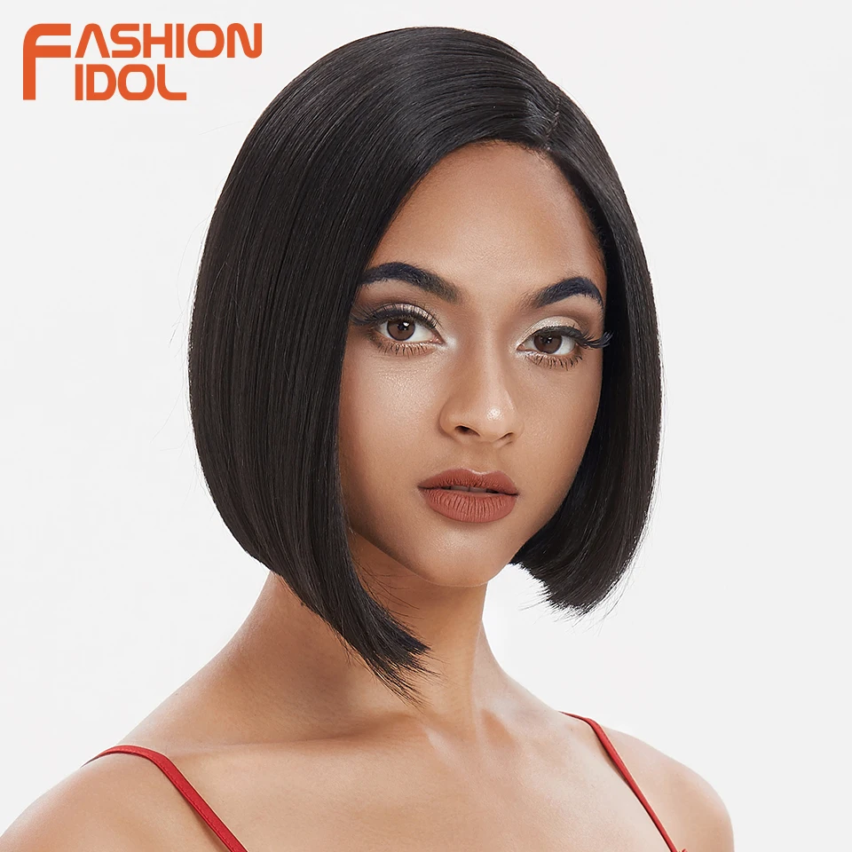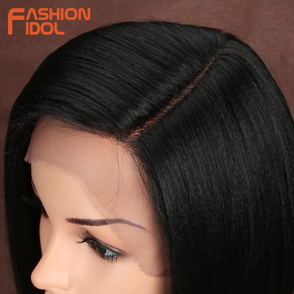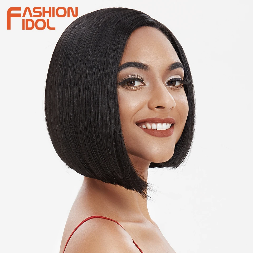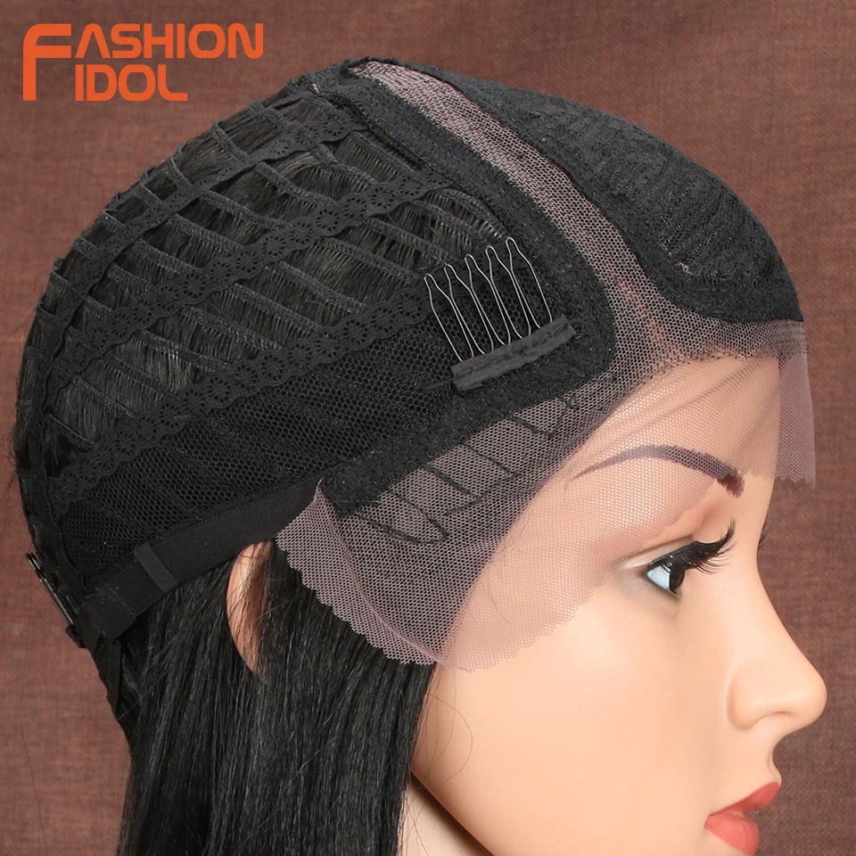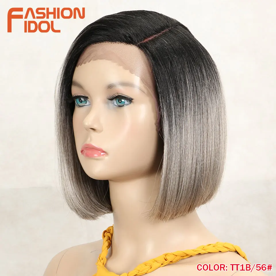 Модные идол яки прямые волосы синтетическая боковая часть кружева парик Омбре коричневые термостойкие волокна косплей боб парики для чернокожих женщин