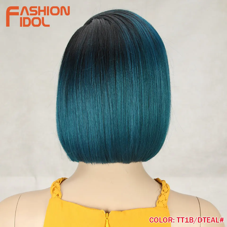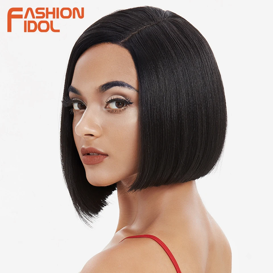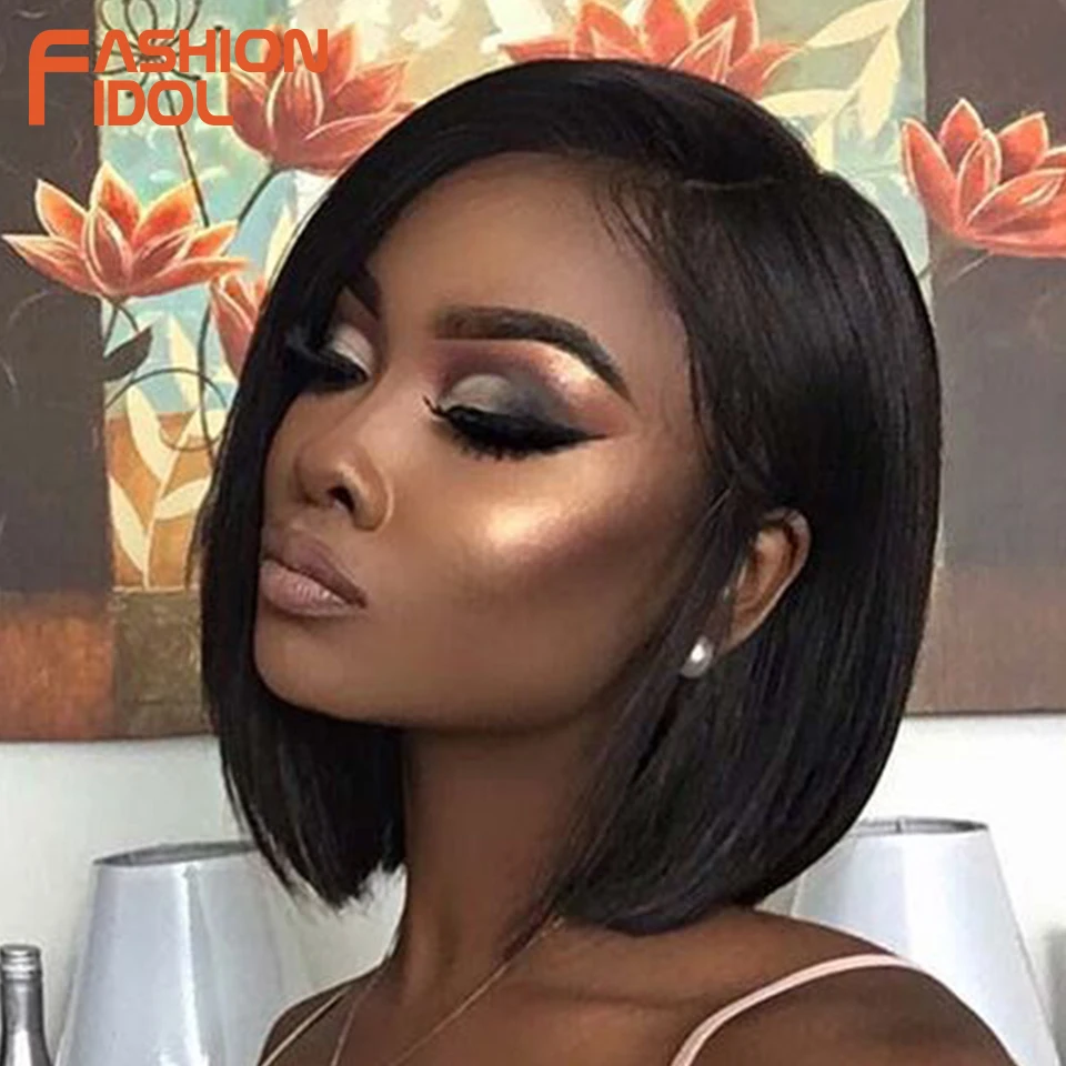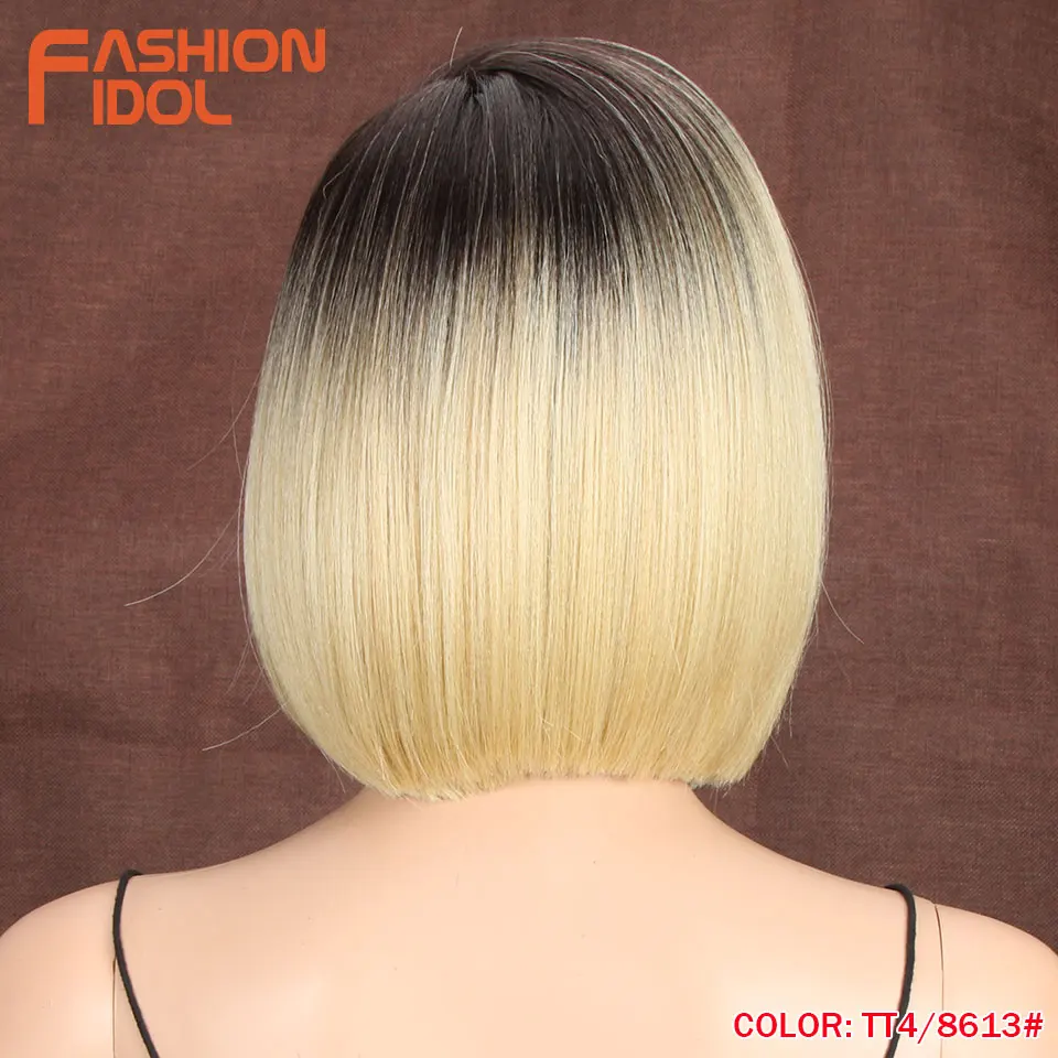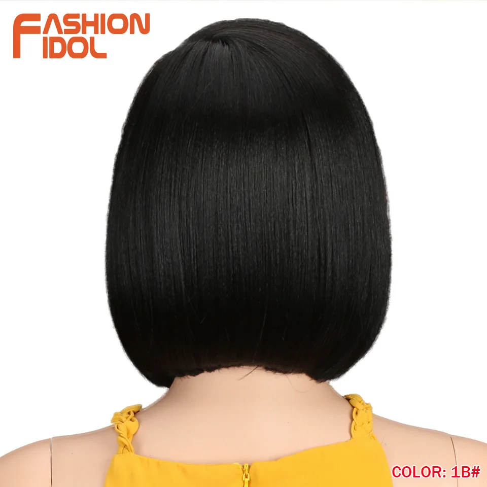 Модные идол яки прямые волосы синтетическая боковая часть кружева парик Омбре коричневые термостойкие волокна косплей боб парики для чернокожих женщин