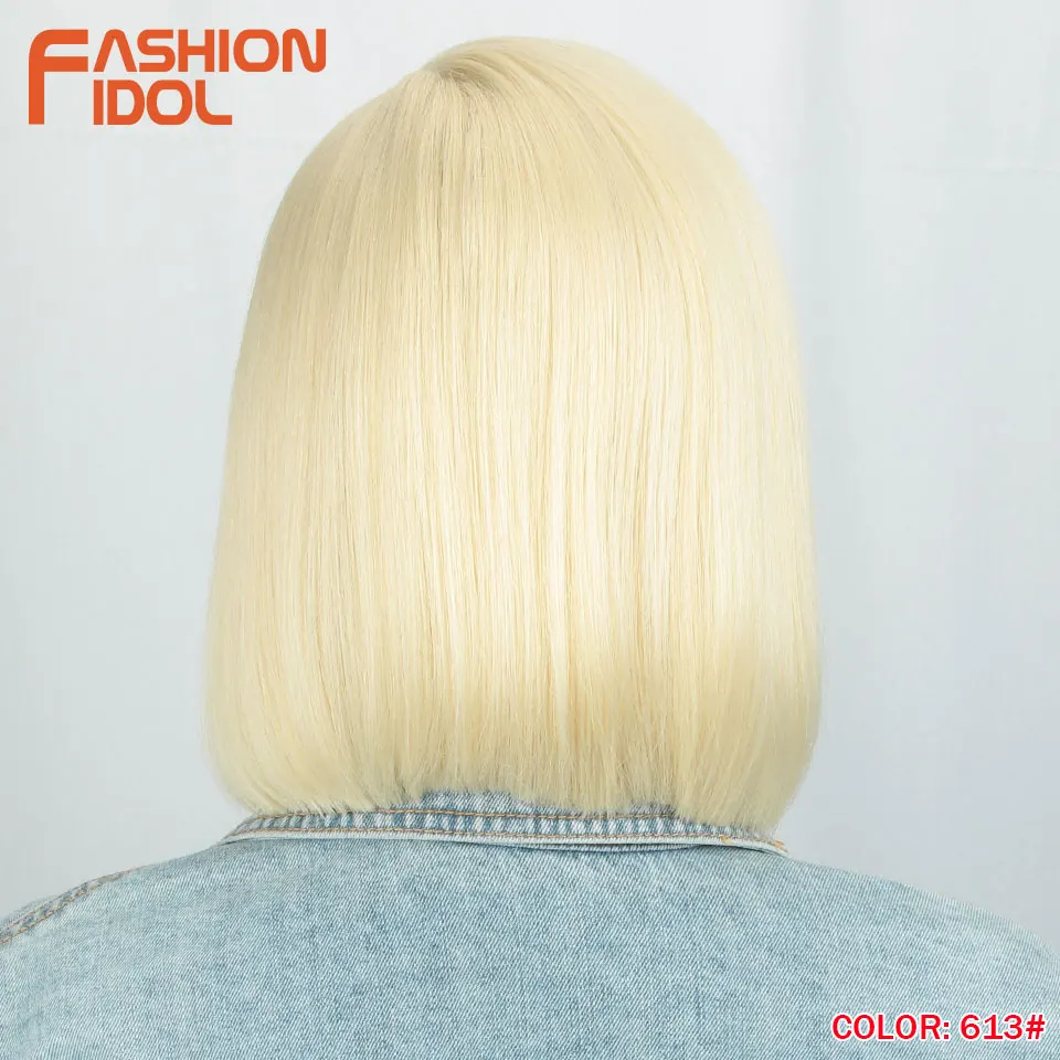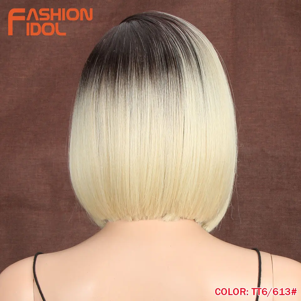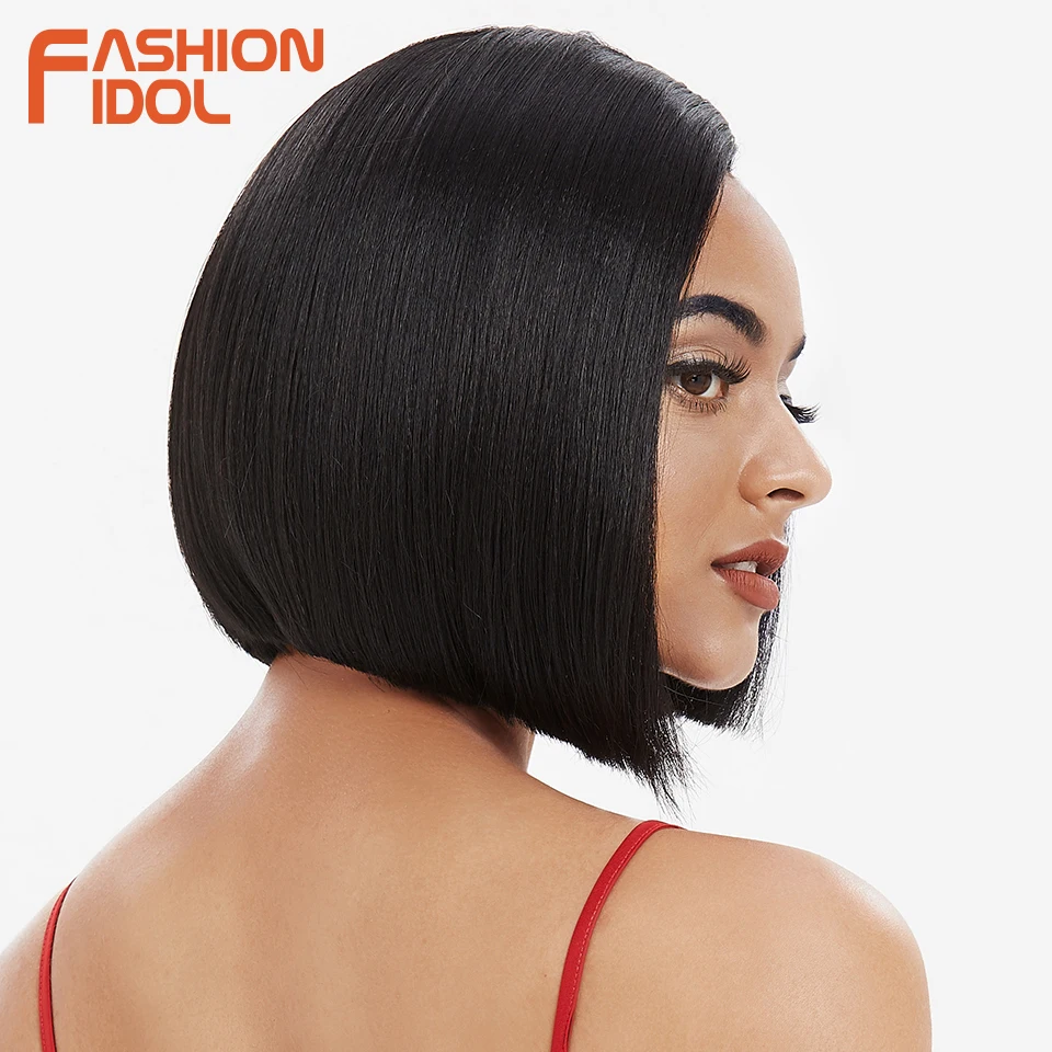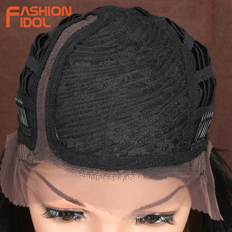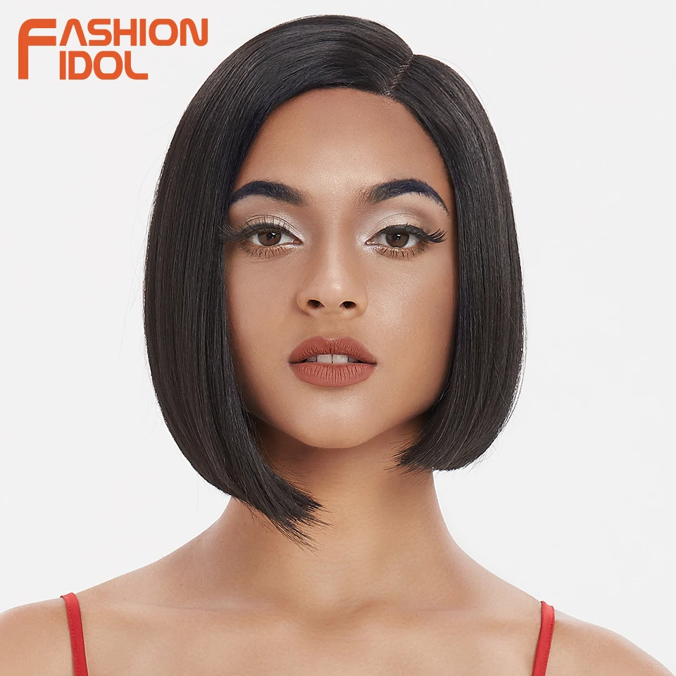Модные идол яки прямые волосы синтетическая боковая часть кружева парик Омбре коричневые термостойкие волокна косплей боб парики для чернокожих женщин