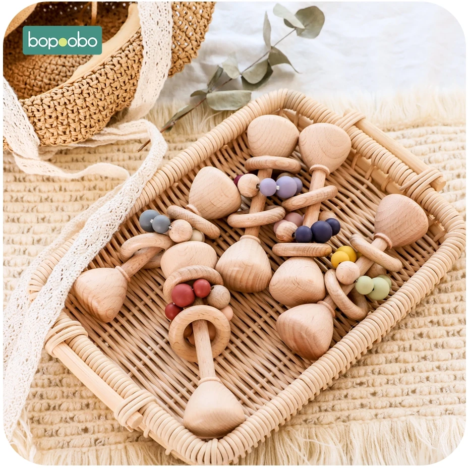 Bopoobo, 20 шт, детские погремушки, бук, деревянный браслет для про...