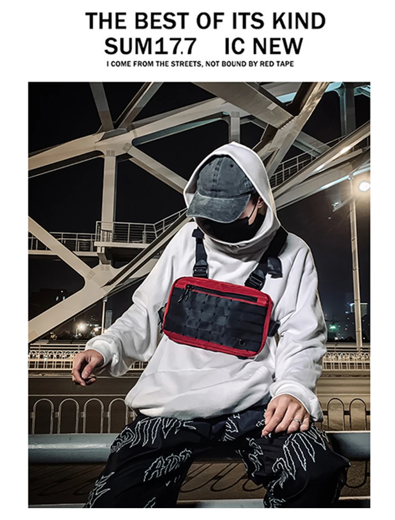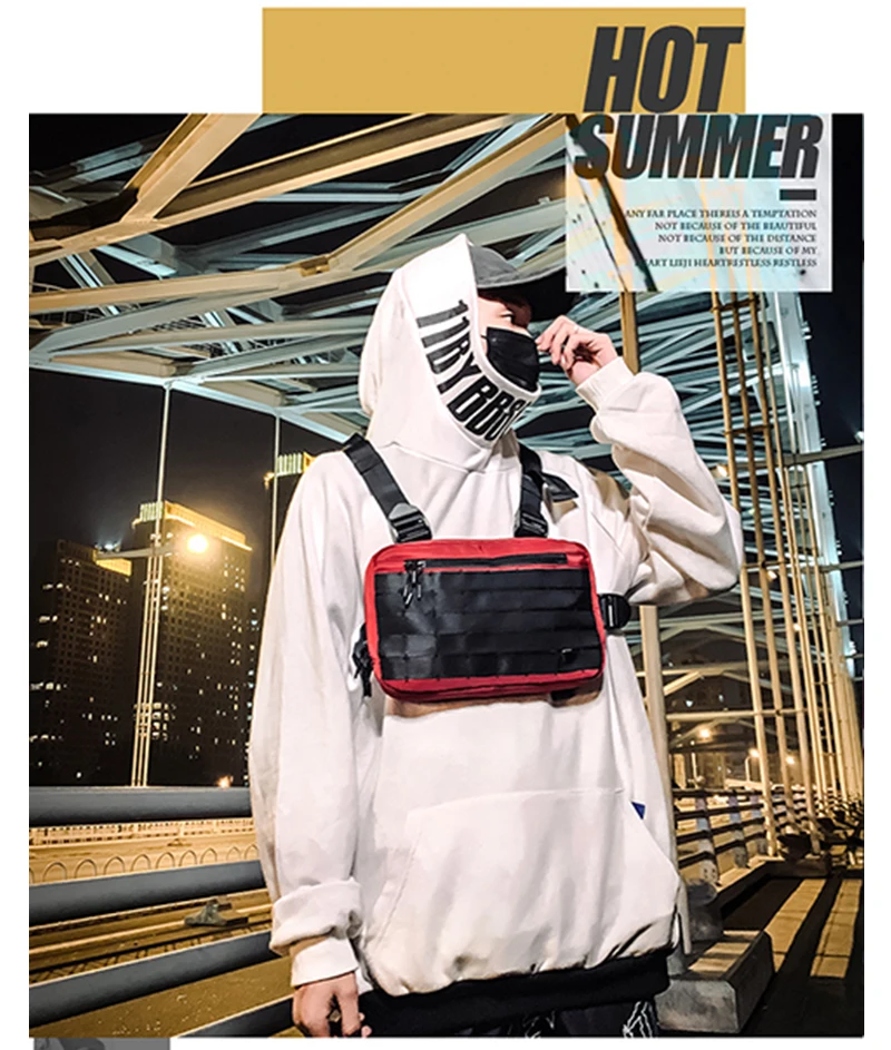 Нагрудная сумка Kanye Мужская, жилет в стиле хип-хоп, уличная одежда, модный Тактический саквояж на ремне, квадратный мешок
