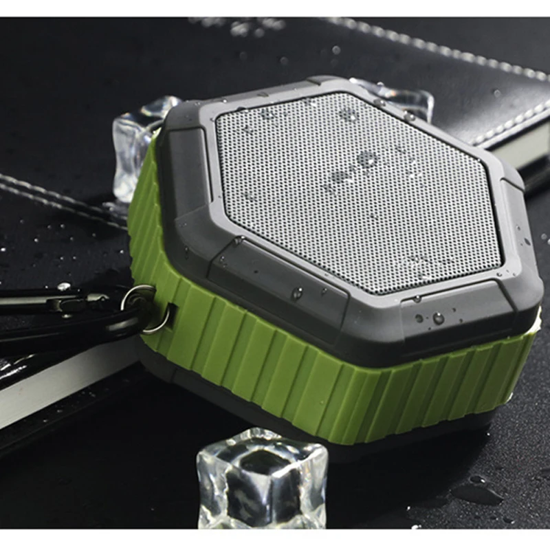 Поддерживаемые Профили Bluetooth: HSP,HFP A2DP,AVRCP Рабочий диапазон: до 10 м/33 фута Время игры: 6 часов Время зарядки: 4 часа Выходная мощность динамика: 3 Вт Вес продукта: 200 г Размер продукта: д90*ш81*В41 мм Водонепроницаемость IP65: Красивые герметичные Силиконовые чехлы и дизайн интерфейса обеспечивают водонепроницаемость, ударопрочность, Пыленепроницаемость, могут использоваться в суровых условиях (например, в душе, кемпинге, походах и плявечерние).