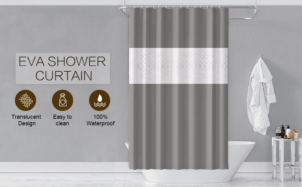 Пластиковая занавеска для душа ЕВА UFRIDAY, водонепроницаемые занавески для ванной комнаты с 3D пластиковым окном, прозрачная верхняя занавеска для ванны с крючками