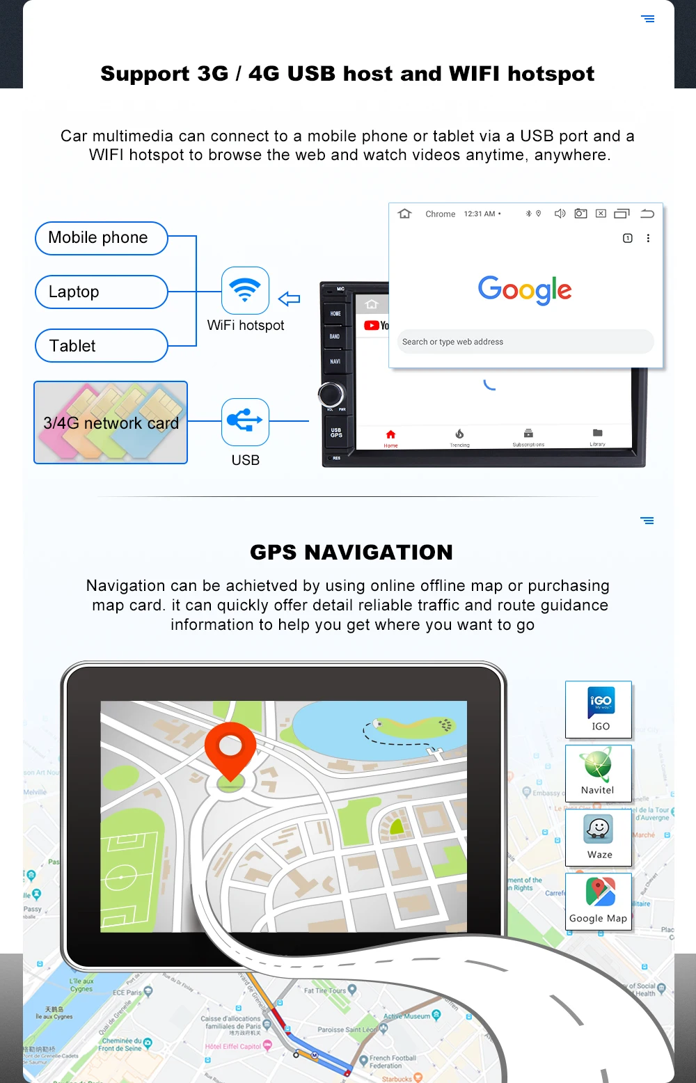 Автомагнитола 2 Din, мультимедийный проигрыватель с GPS-навигацией ...