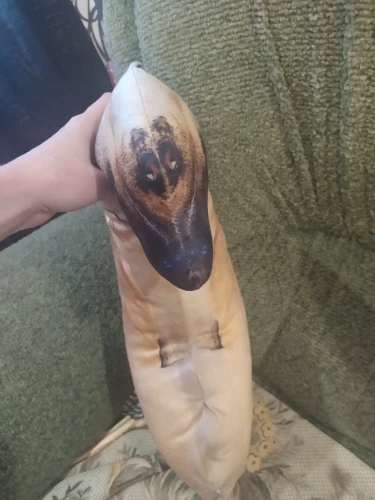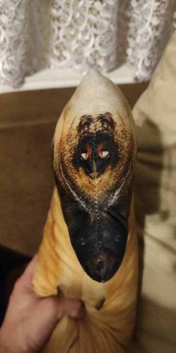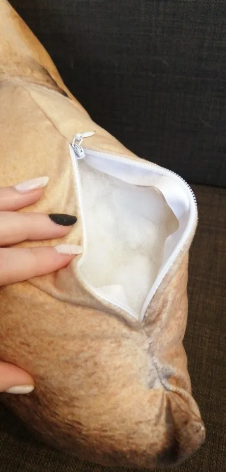 годняк. смешная подушка, правда как подушка не очень применима. На фото выглядит немного "реальнее", чем в реальности. особенно если поставить в соответствии со светом-тенью. есть небольшое отверстие на молнии, можно менять наполнитель. который, к слову, благополучно пролезает и при застегнутой молнии, но не критично. мне нравится, показывал друзьям-знакомым, тоже такую захотели.
